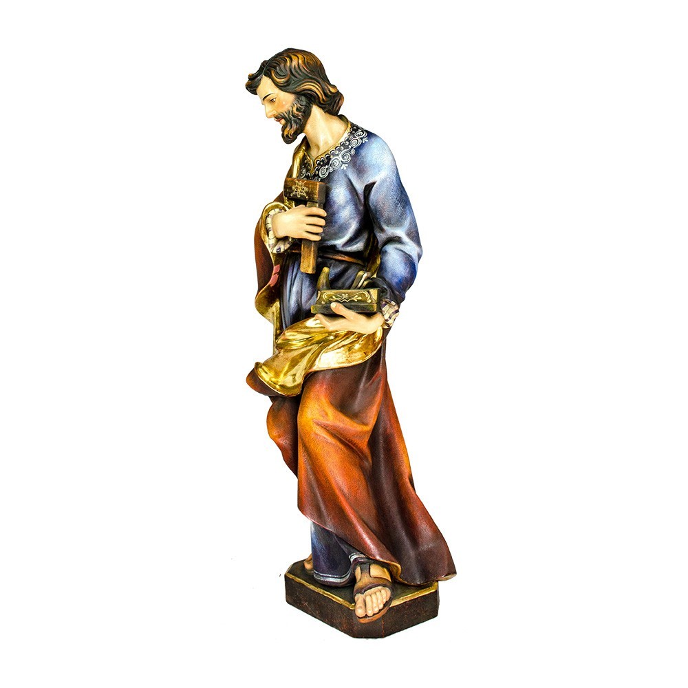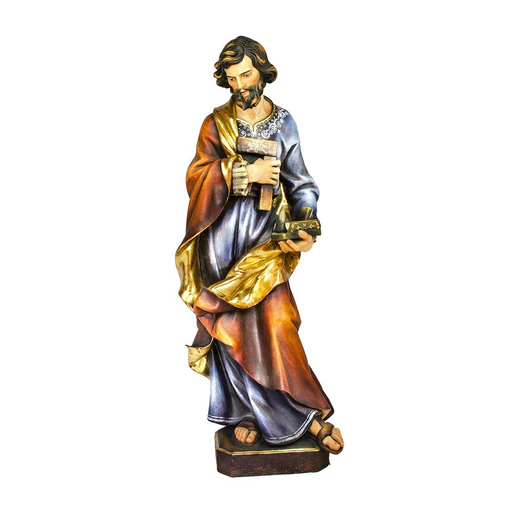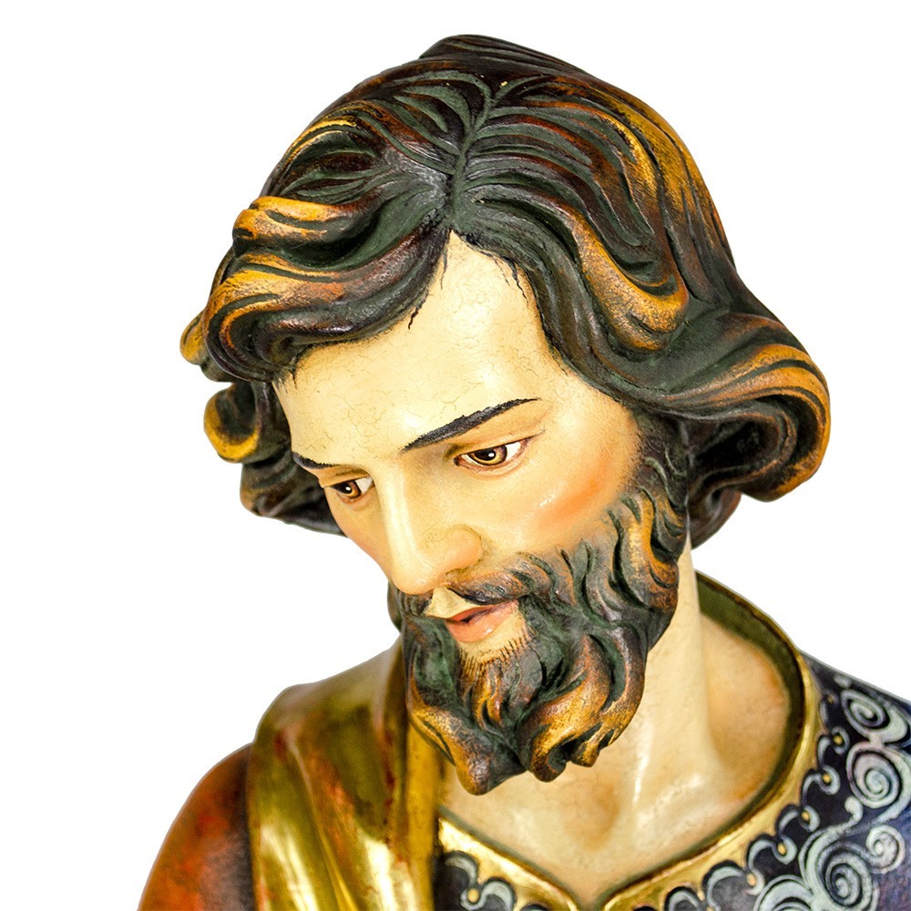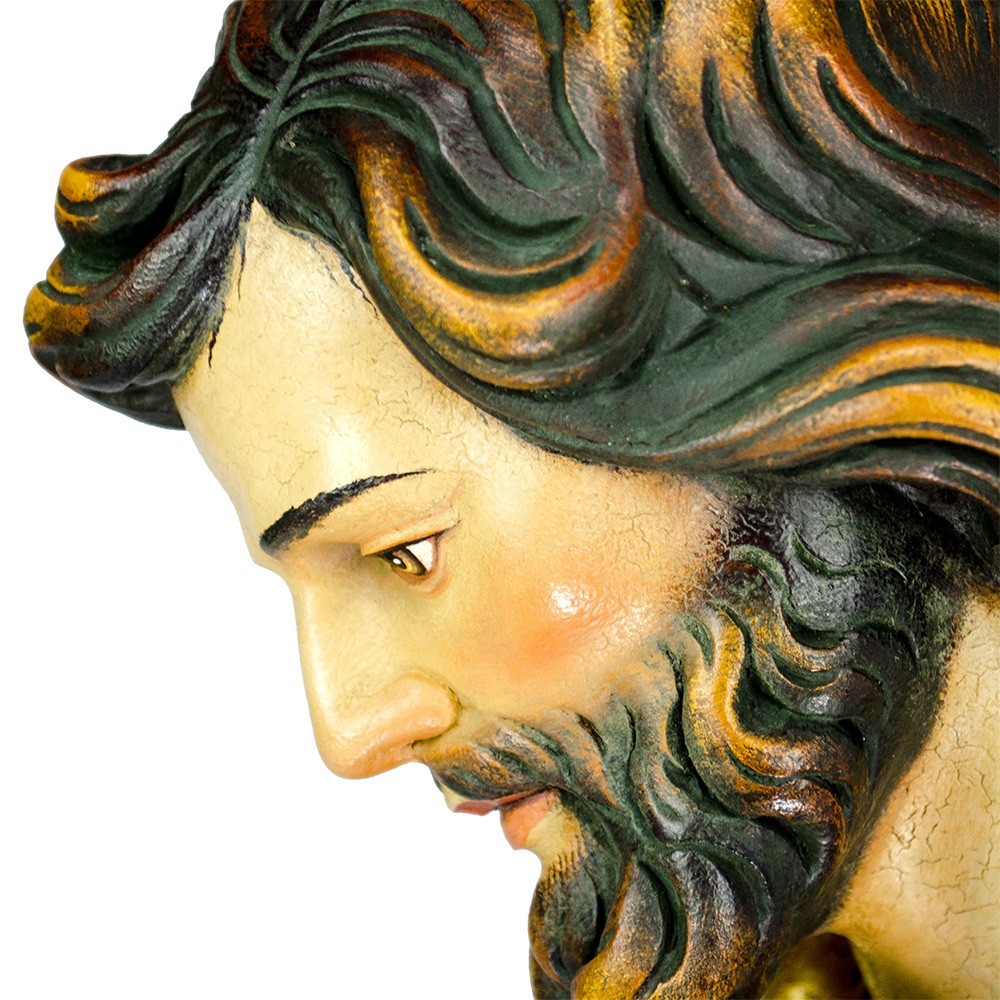 Questa particolare statua è realizzata interamente in legno e successivamente dipinta a mano da esperti artigiani della Val Gardena. Completa di croce sempre in legno. Articolo di alta qualità, curato e rifinito nei minimi particolari.