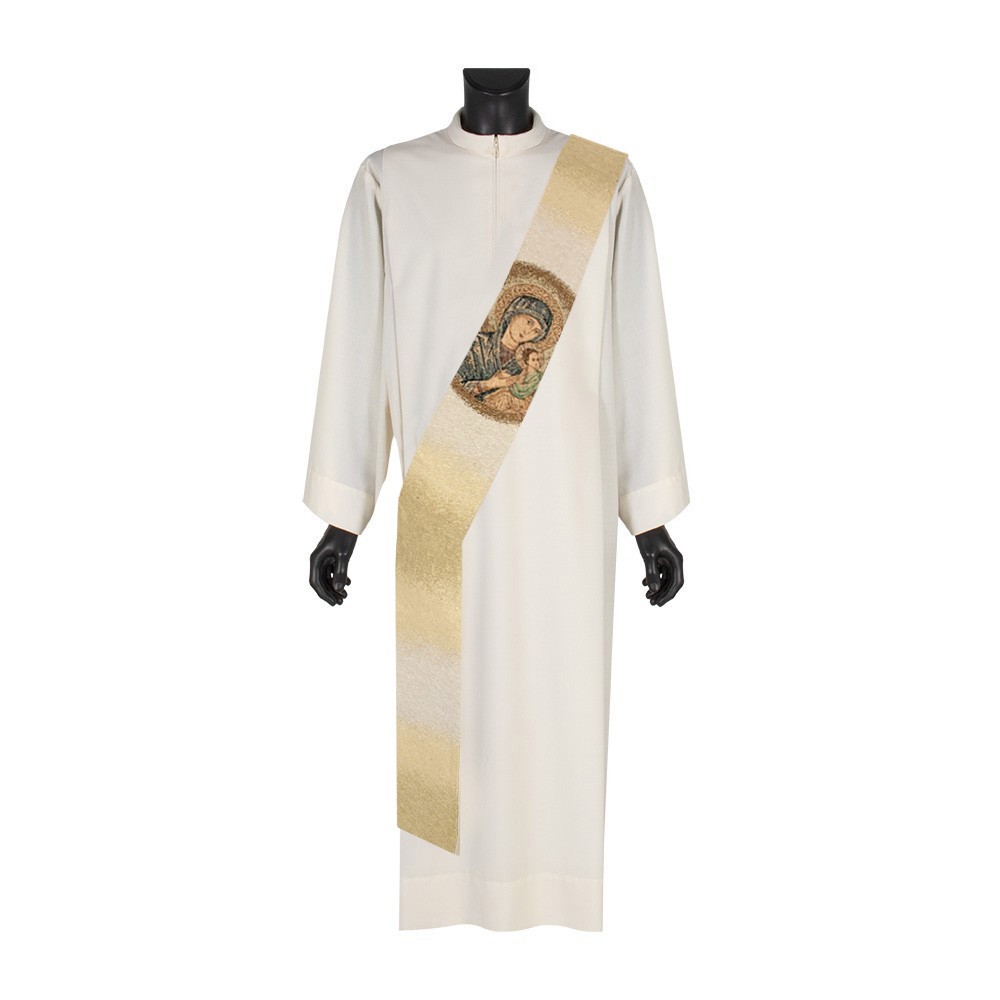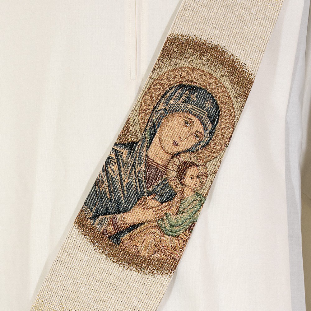 Stola avorio per diacono con ricamo dedicato alla Madonna del Pepetuo Soccorso.