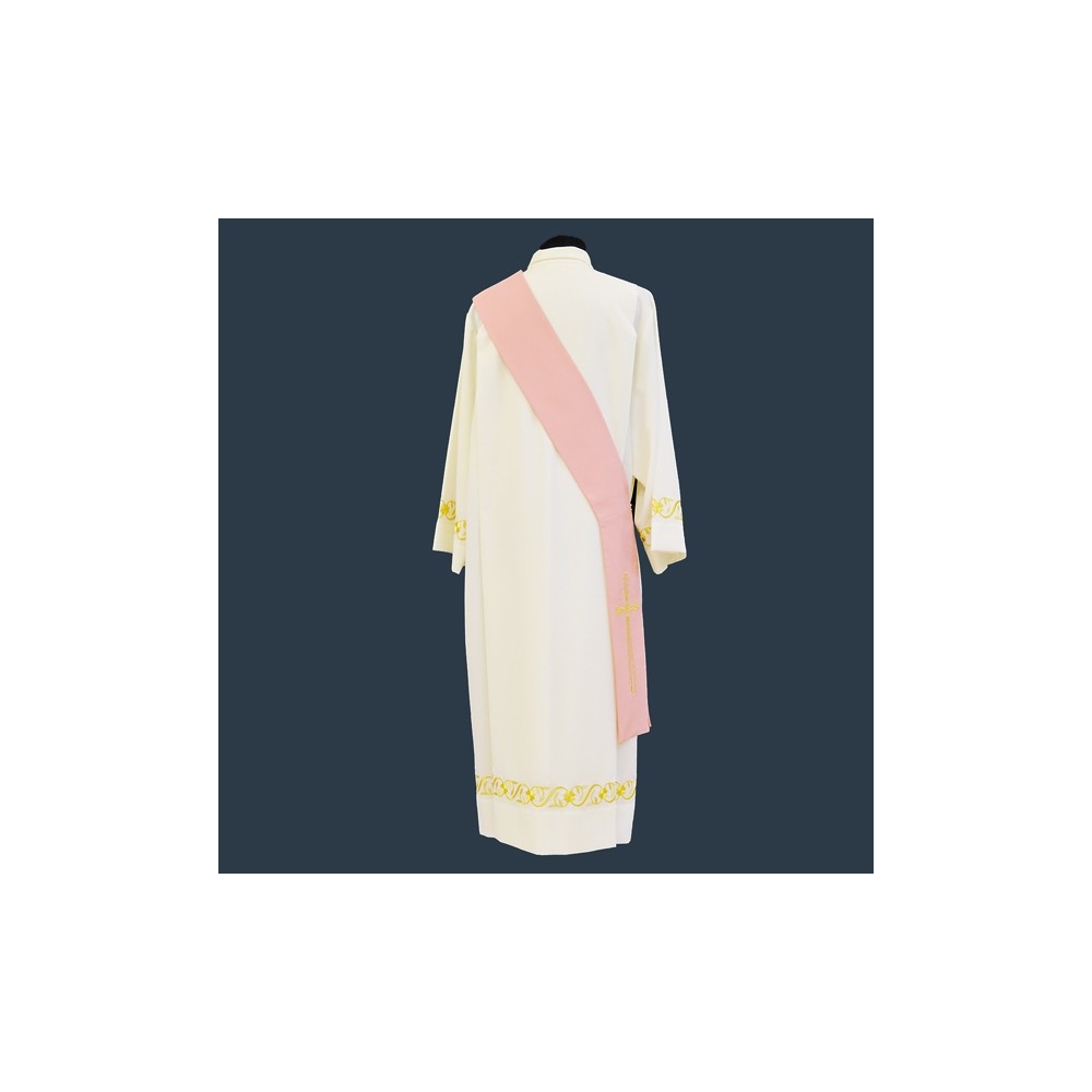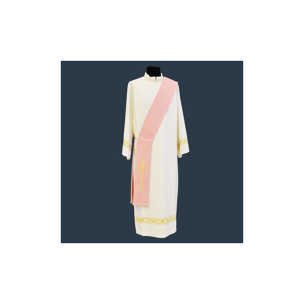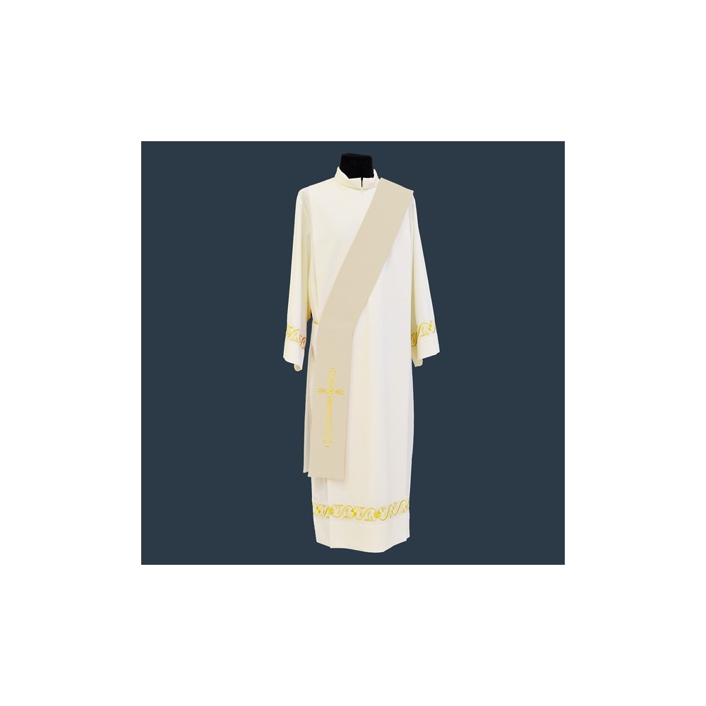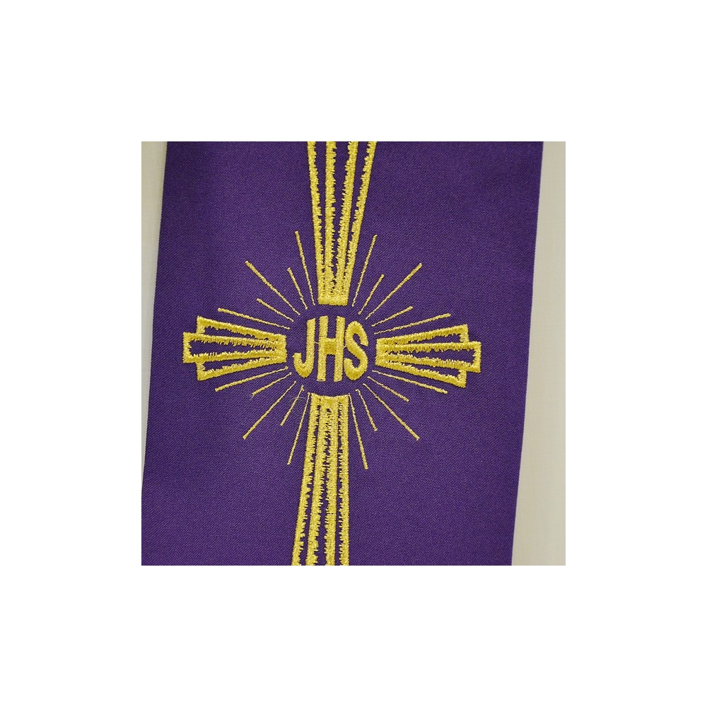 Stola da Diacono realizzata in poliestere, con ricamo dorato sul fronte. I ricami vengono utilizzati con macchine di alta qualità realizzati da una sartoria italiana. Disponibile nei colori liturgici. Made in Italy.