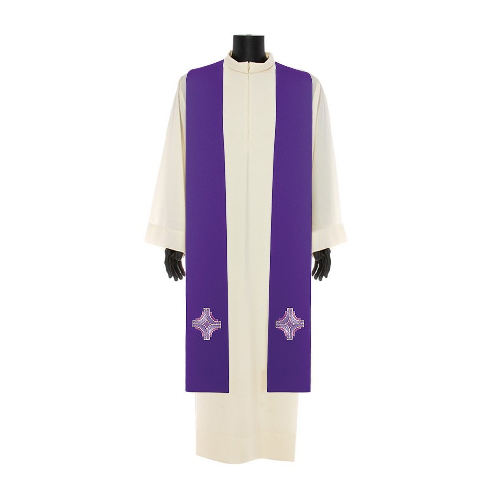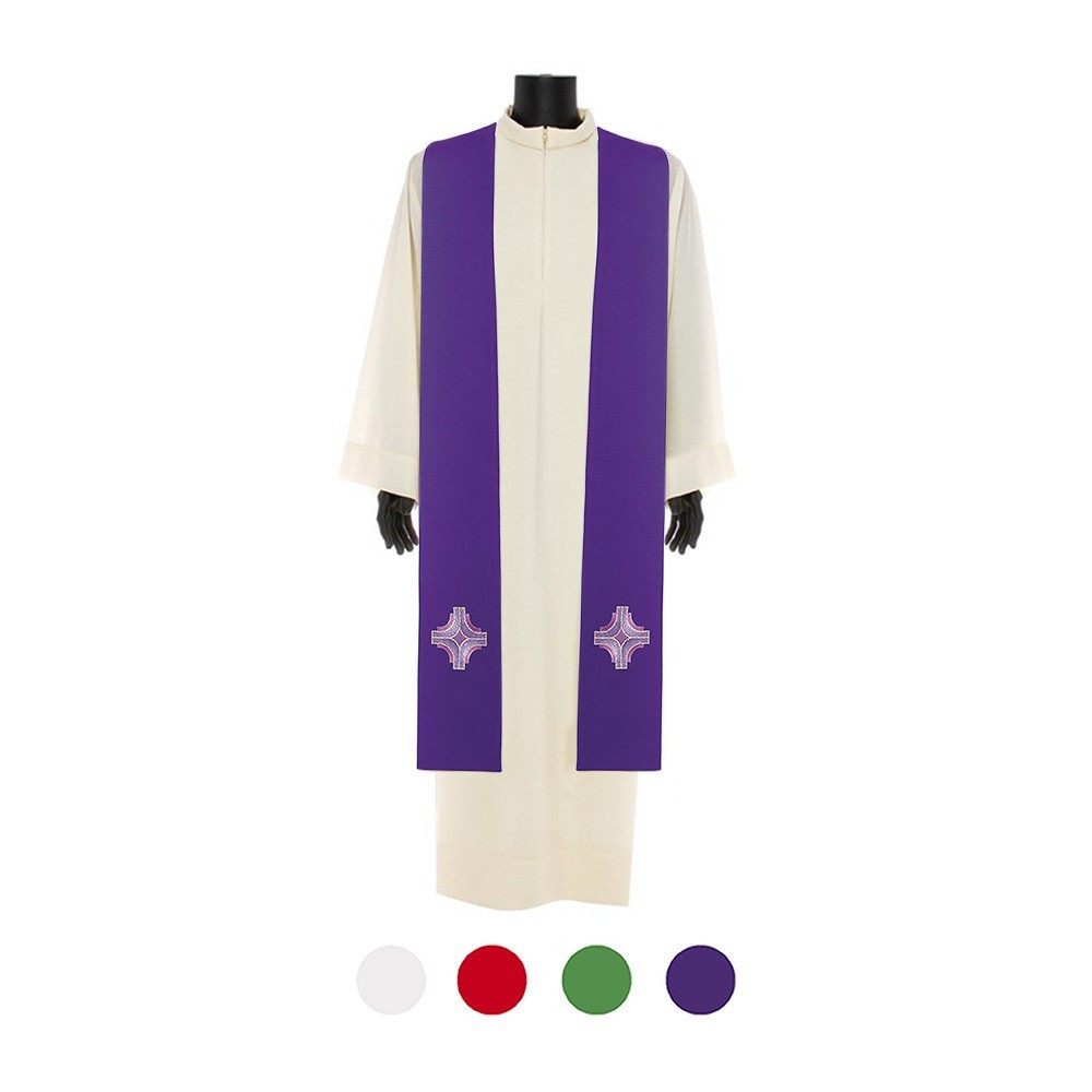 Stola sacerdotale confezionata in leggero e fresco tessuto 100% poliestere. Questo elegante paramento sacro è realizzato interamente in Italia e presenta suna croce ricamati su entrambi i lati.