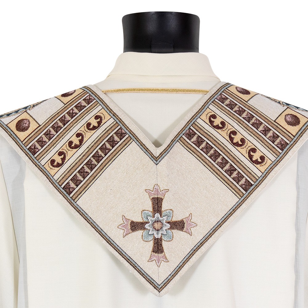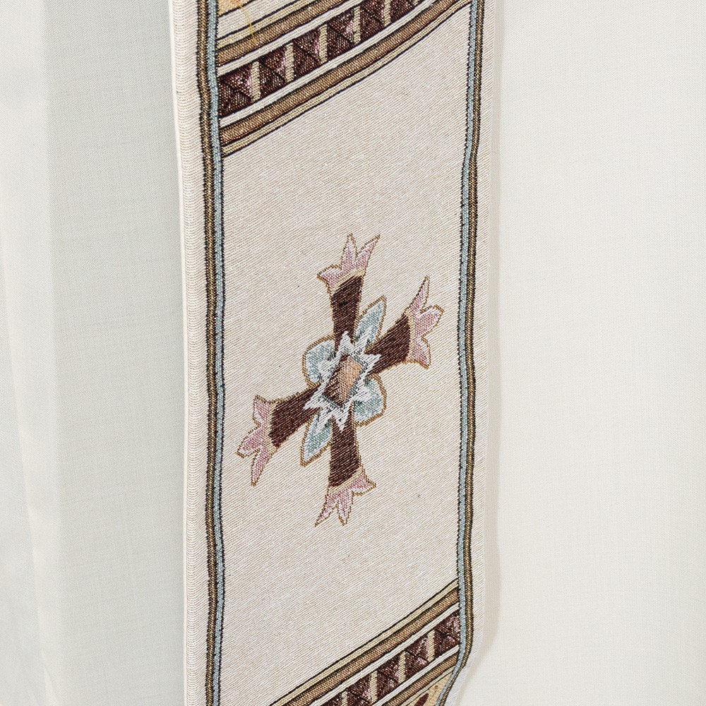 Articolo di ottima qualità, ideato esclusivamente da una sartoria italiana specializzata da oltre vent'anni nella realizzazione di paramenti e abbigliamento sacro come stole, casule, coprileggi, stendardi etc con un procedimento di tessitura artigianale.