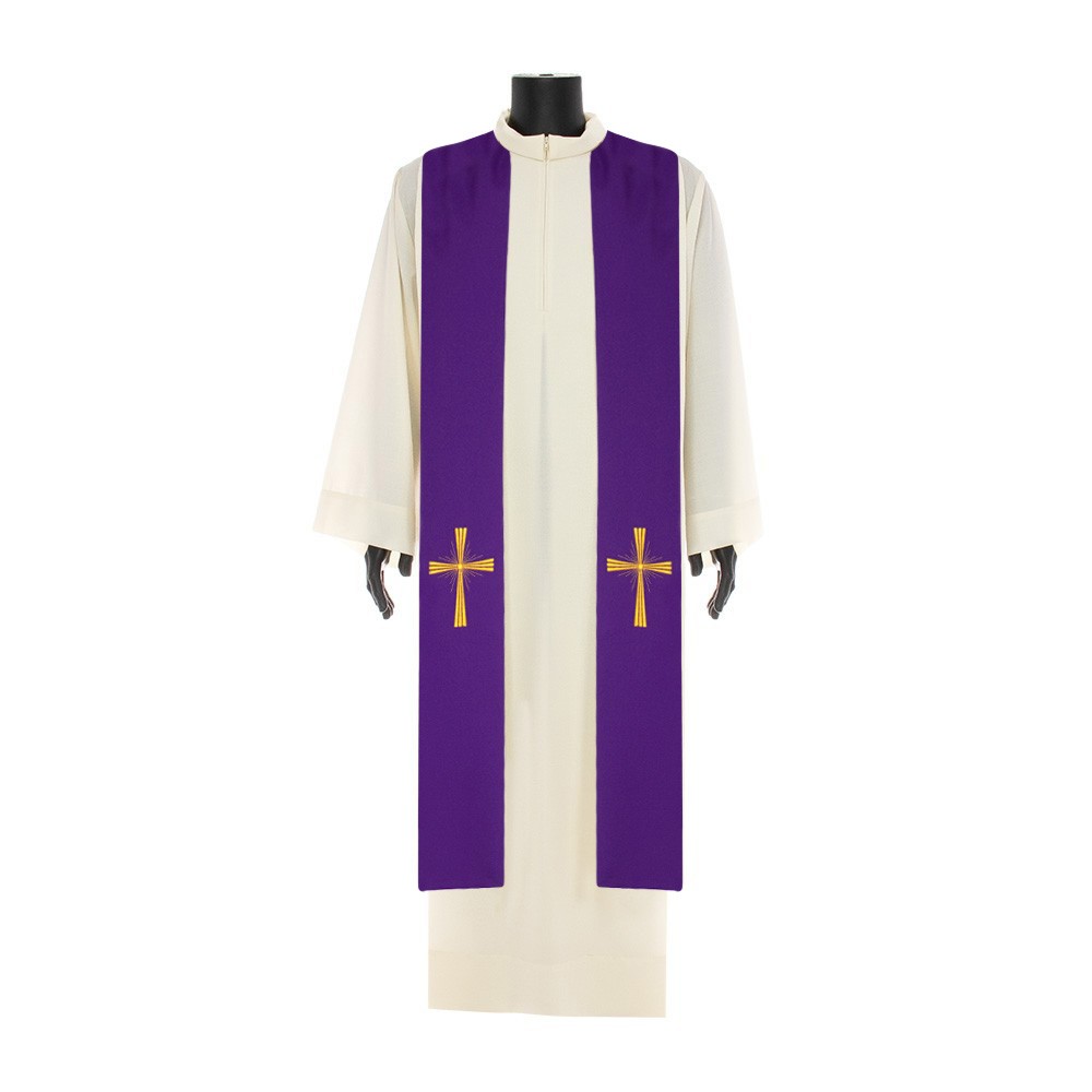Stola viola per sacerdote confezionata in leggero e fresco tessuto poliestere.