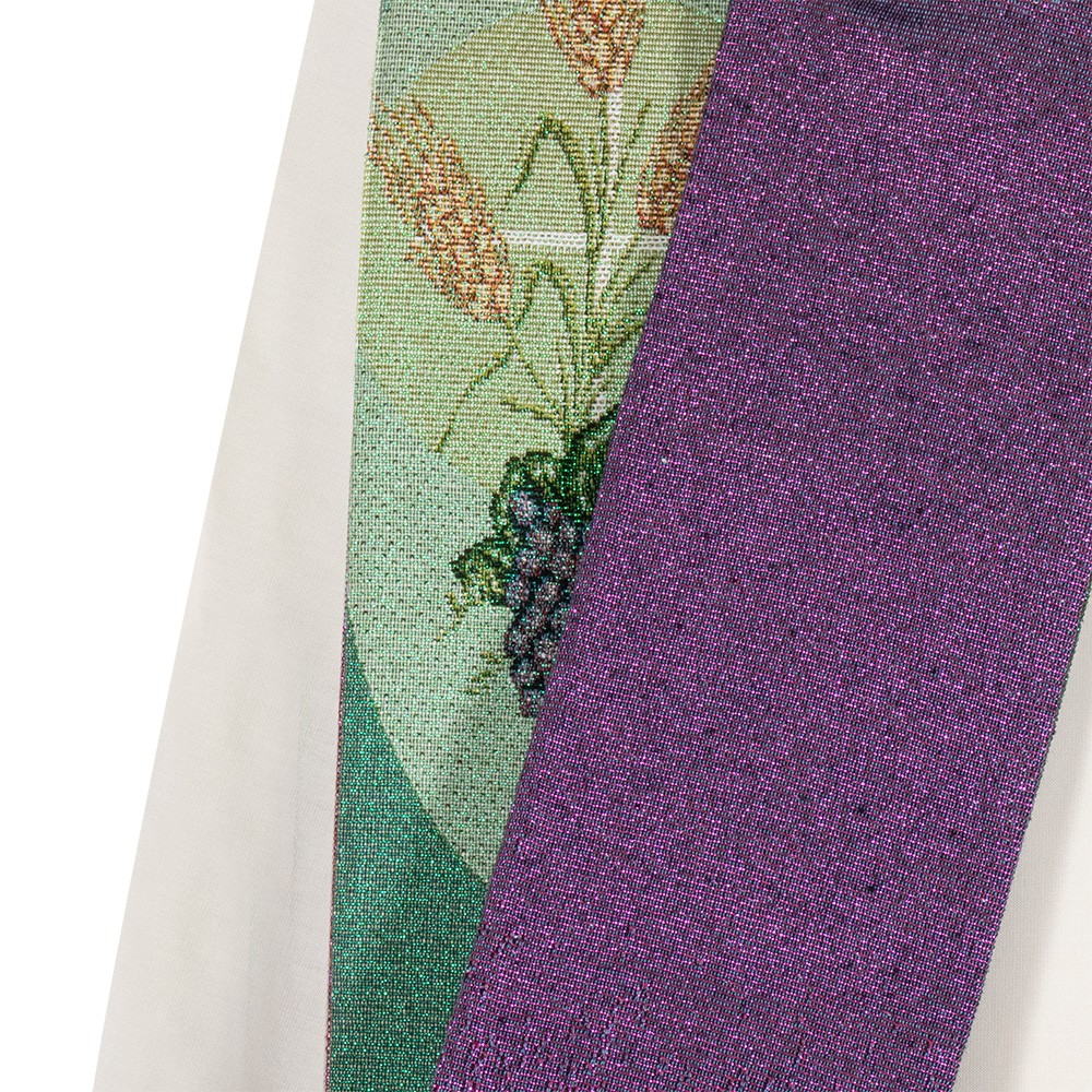 Lavorazione lamè in rilievo su tessuto cotone, poliestere e lurex.