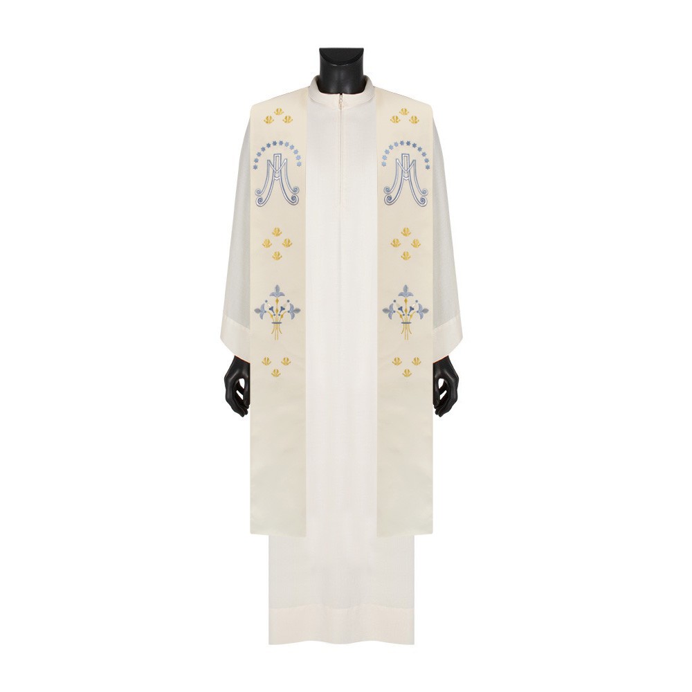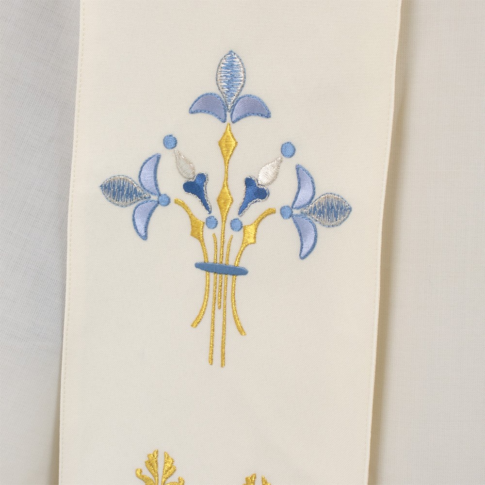 Stola sacerdotale con ricamo Mariano e gigli.