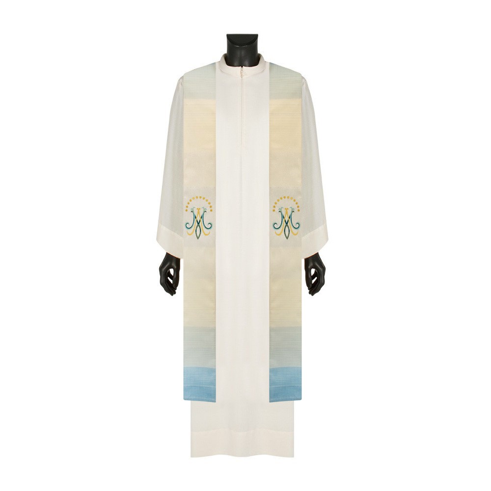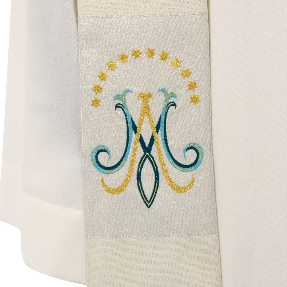 I ricami presenti su questo paramento sono eseguiti con cura e precisione interamente a macchina, utilizzando filati di ottima qualità.
