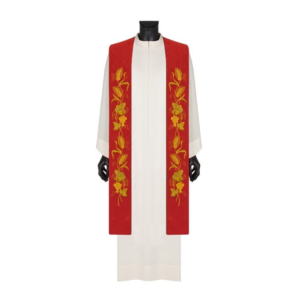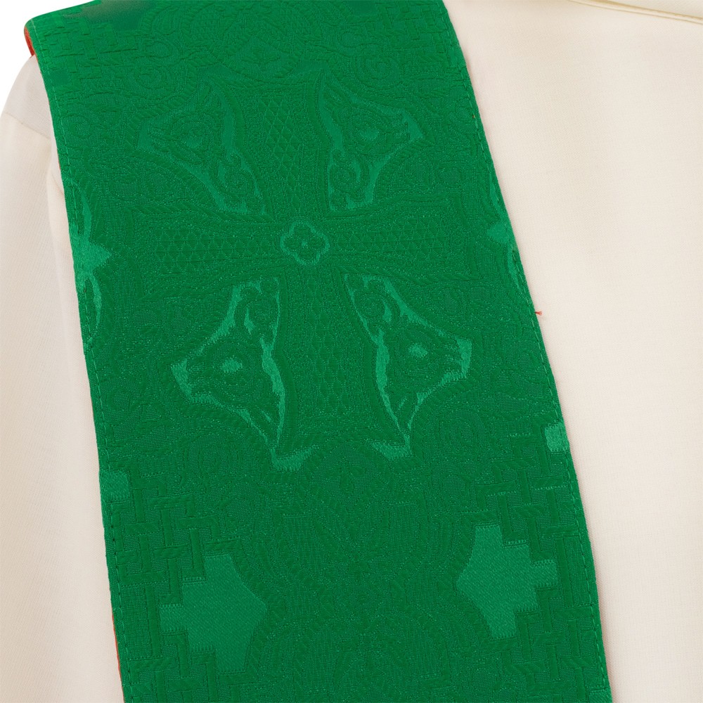 Stola per sacerdote double face verde e rossa, con ricco ricamo eseguito accuratamente a macchina.