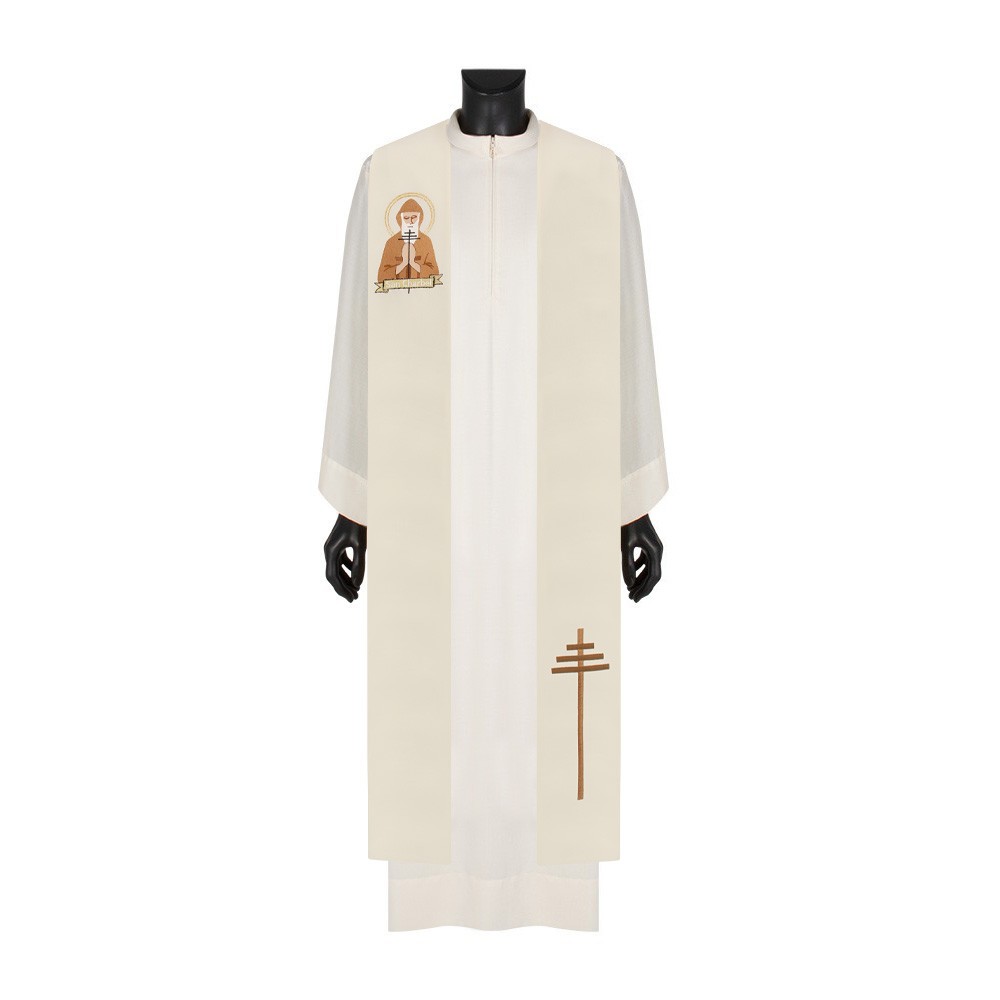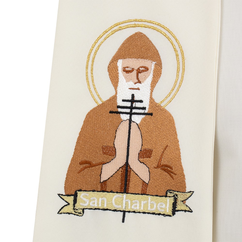 Stola sacerdotale color avorio con immagine ricamata di "SAN CHARBEL".