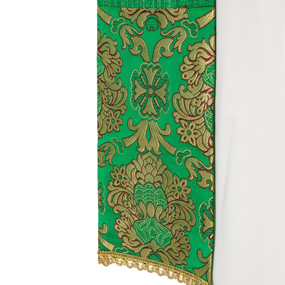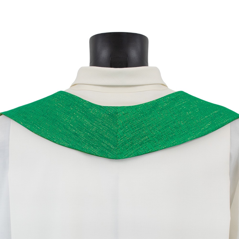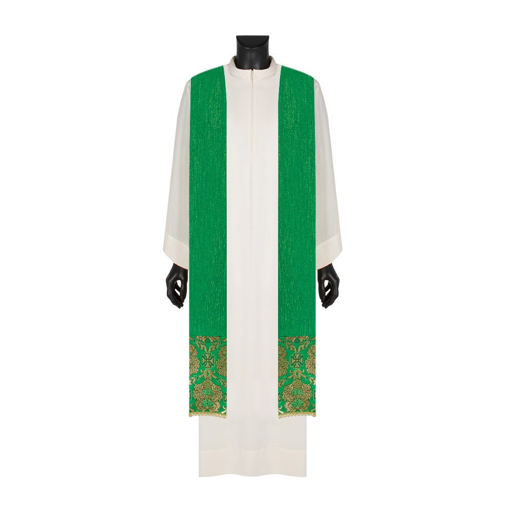Stola da sacerdote verde con graziose applicazione di agremano e tessuto broccato.