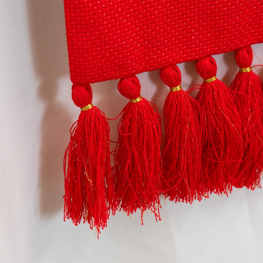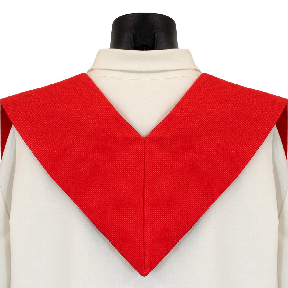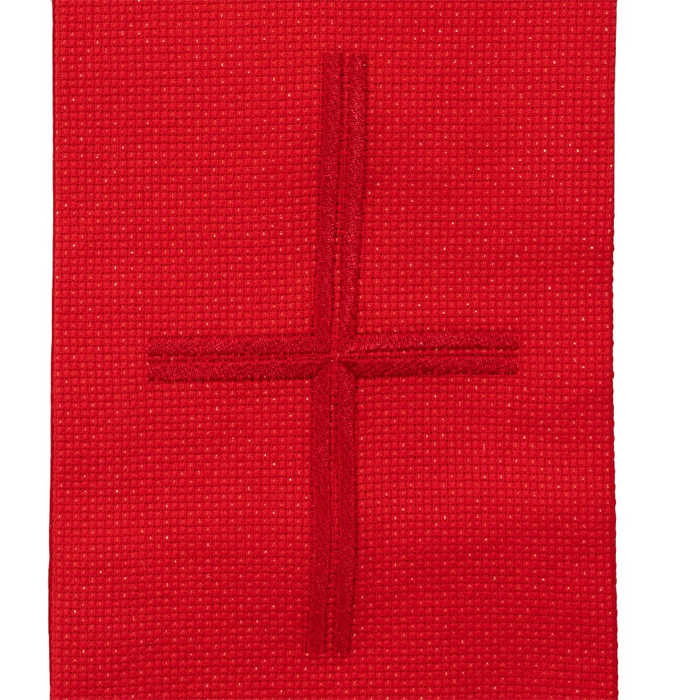 Pregiata stola rossa per sacerdote realizzata in leggero tessuto lino, poliestere e lurex.
