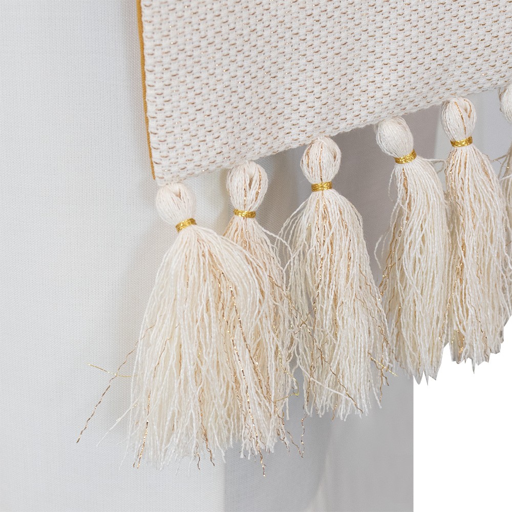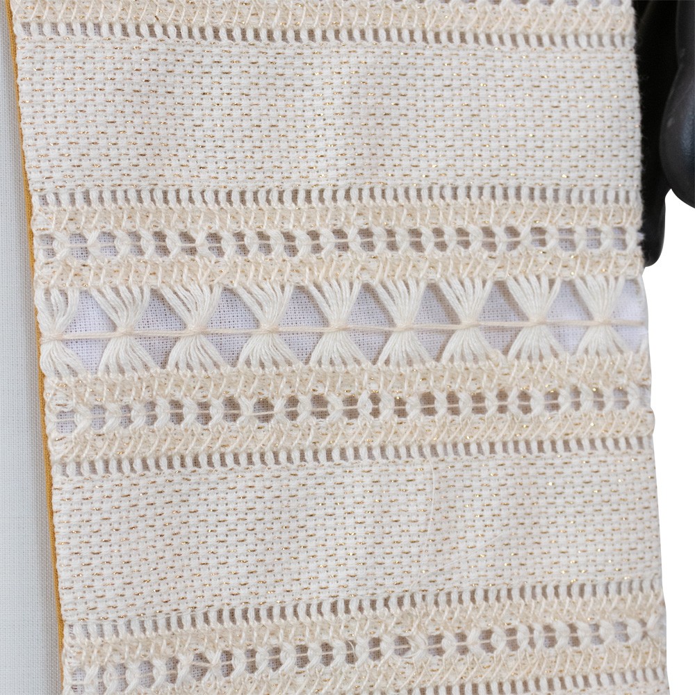 Questa pregiata stola per sacerdote è realizzata in leggero tessuto lino, poliestere e lurex.