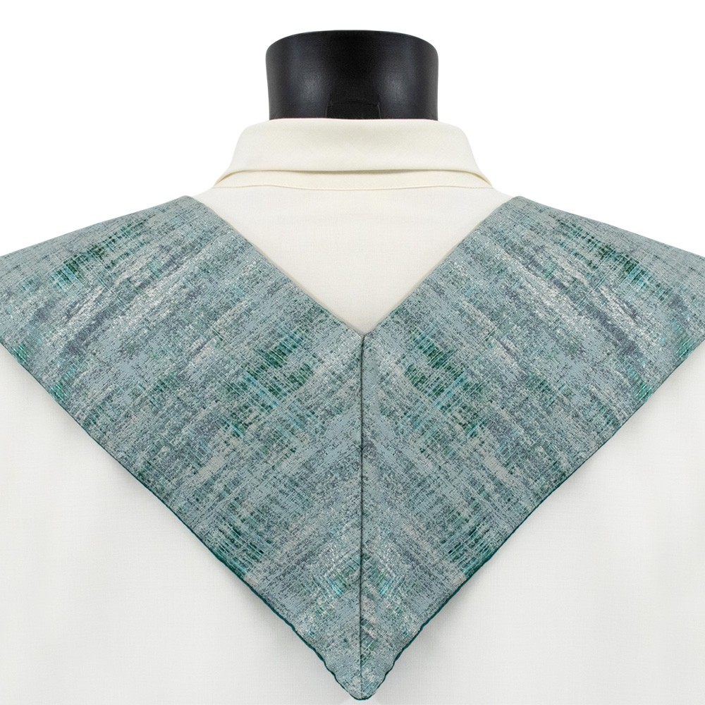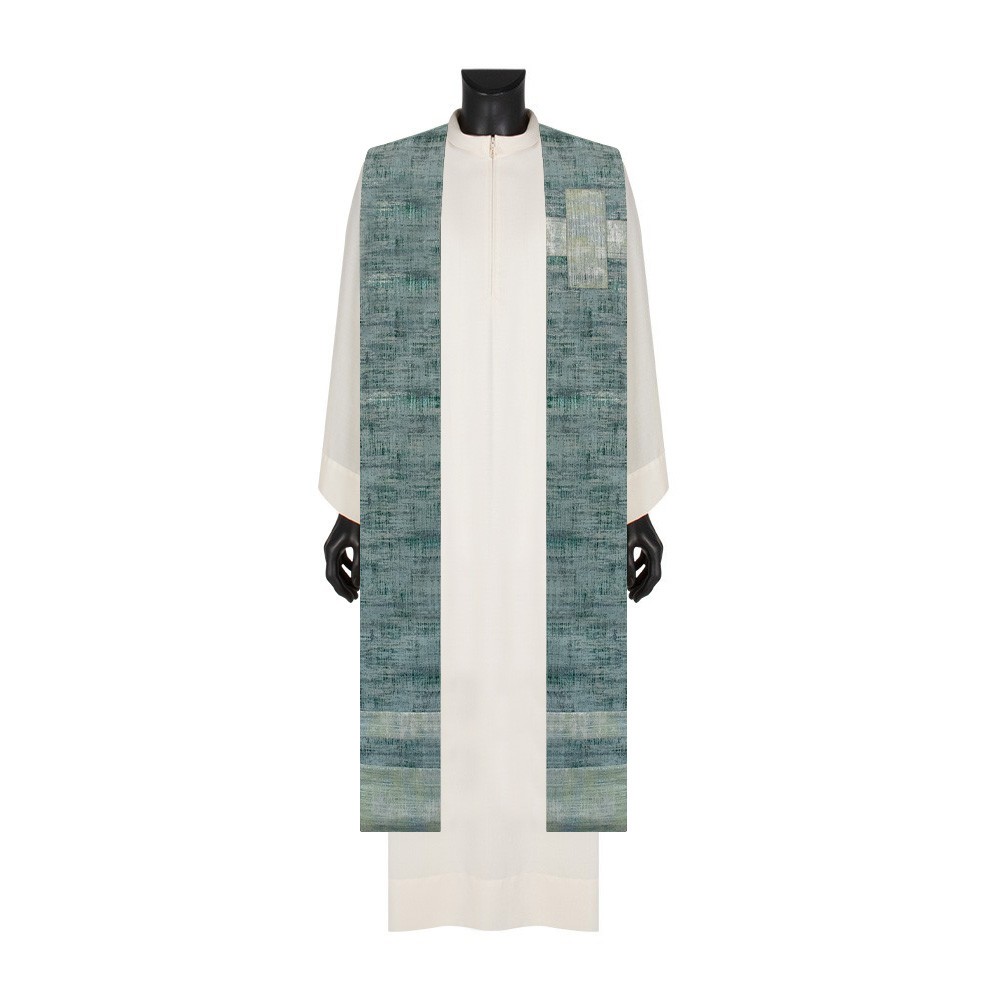 Questa stola per sacerdote di colore verde è realizzata in un pregiato tessuto misto di lino e seta, offrendo un prodotto leggero e traspirante, perfetto per ogni celebrazione liturgica, anche durante la stagione estiva.