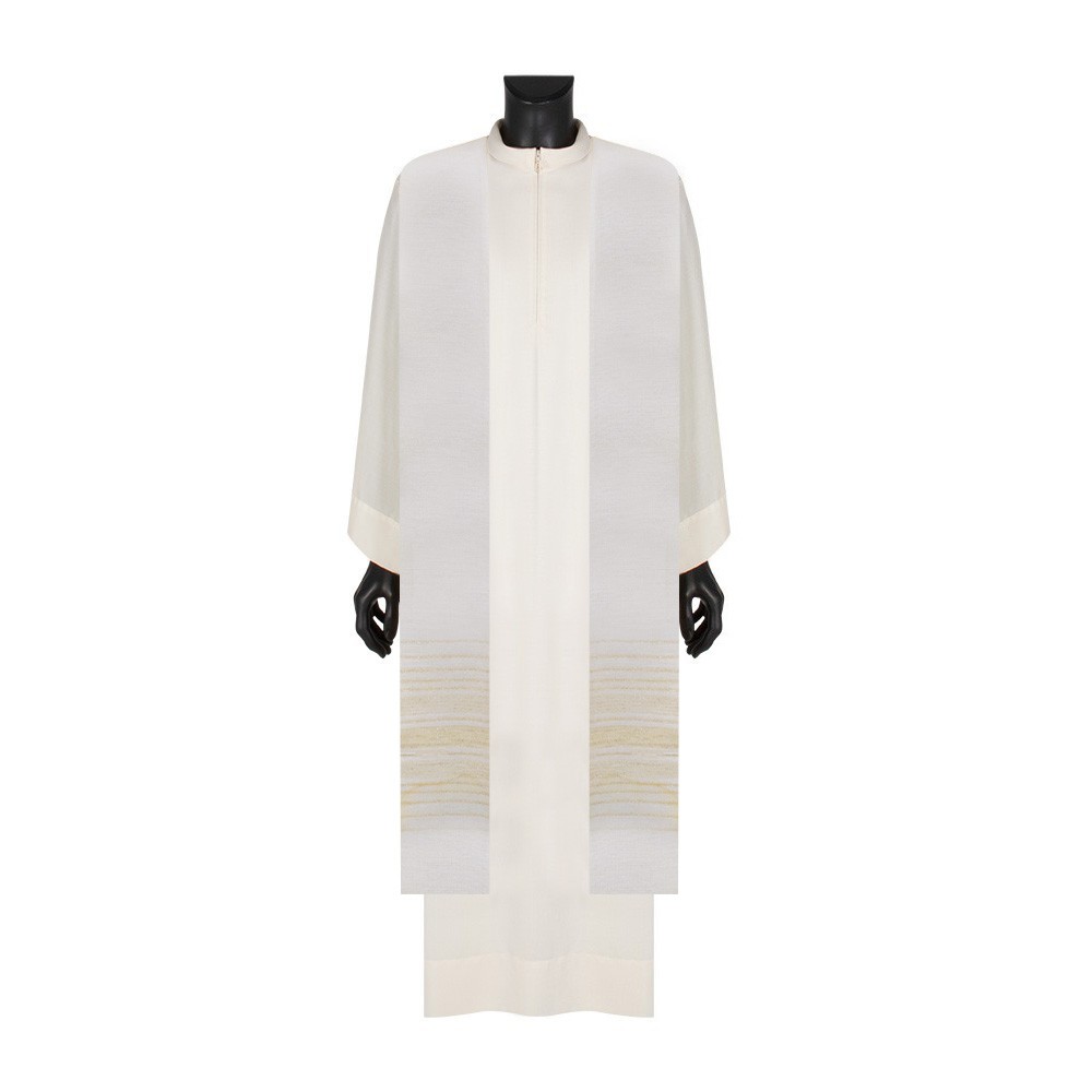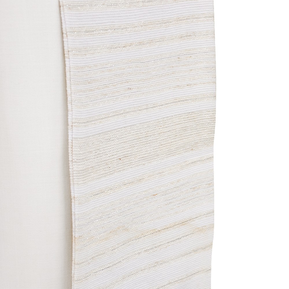 Stola sacerdotale color avorio, impreziosita da eleganti righe con inserti dorati e argentati.