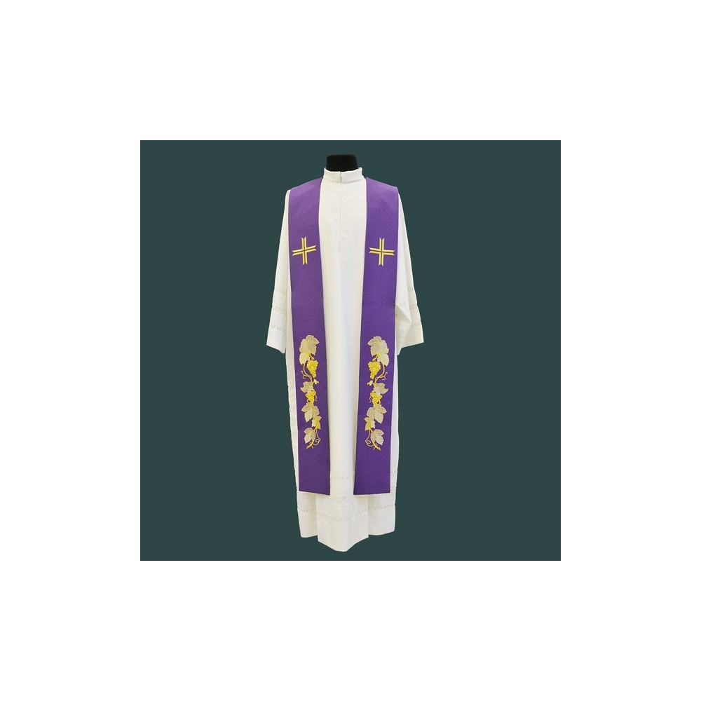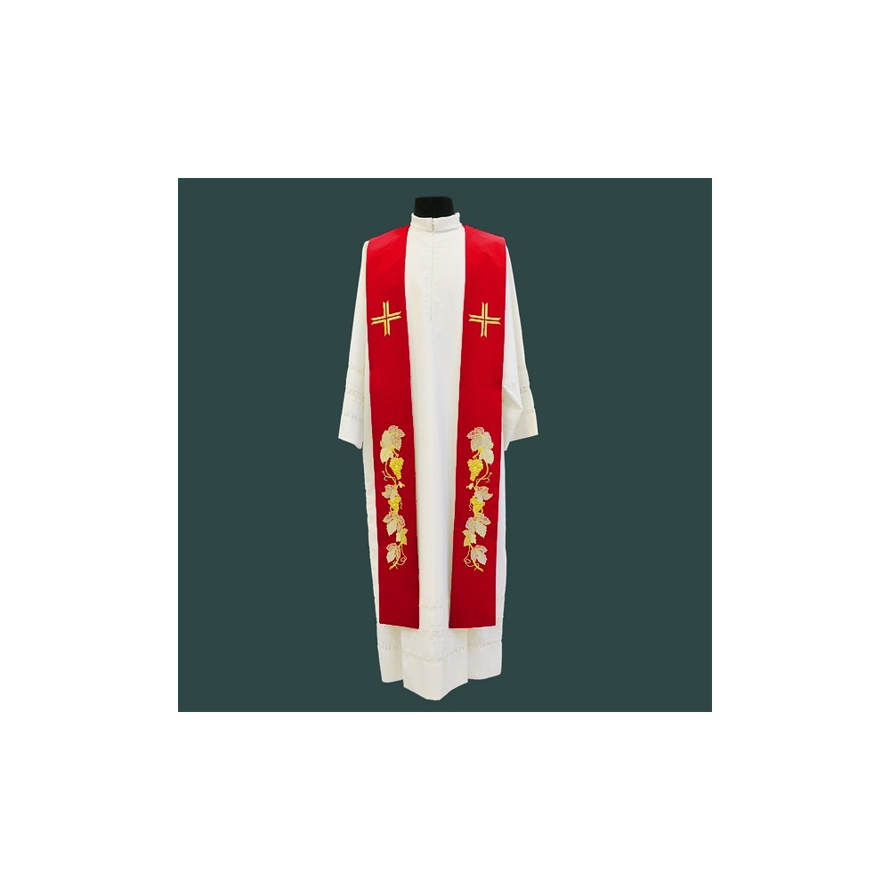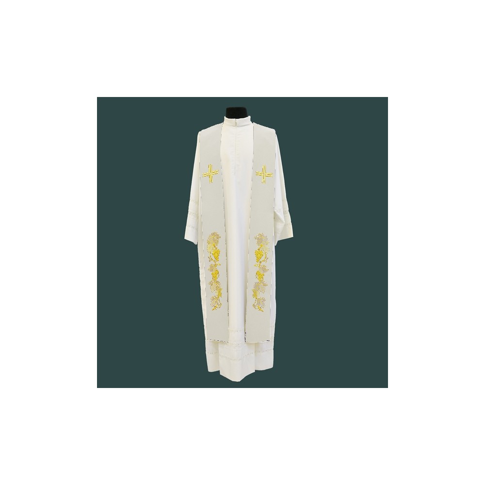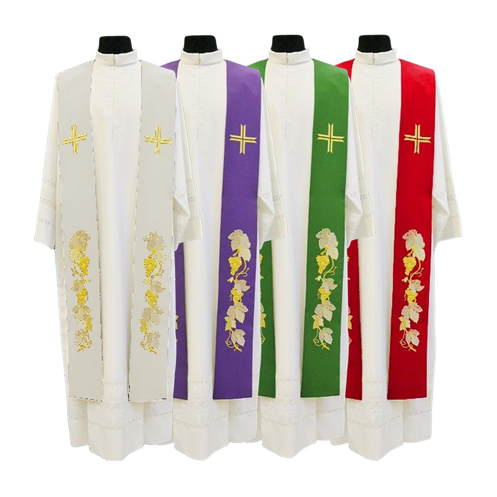 Stola con croce, spiga e uva dorati sul fronte. Disponibile nei colori liturigi. Scegli il colore!!