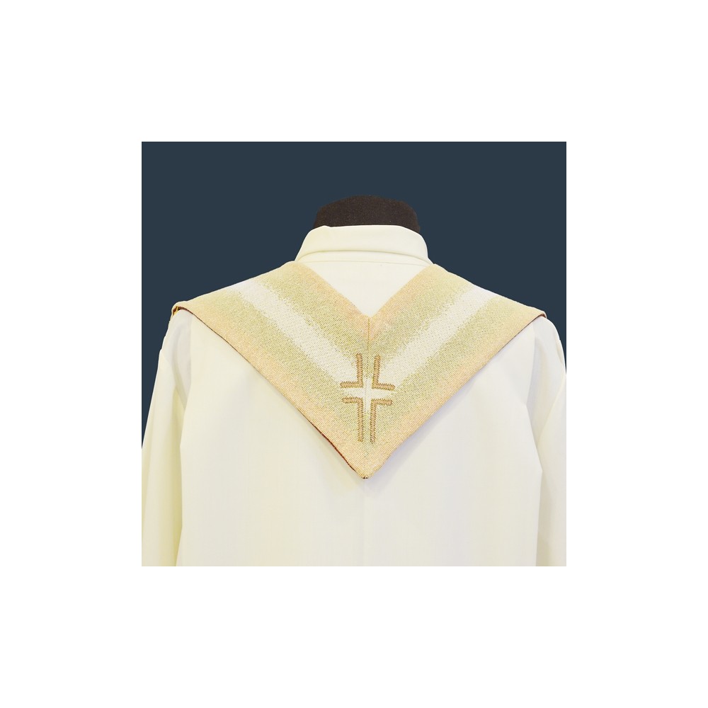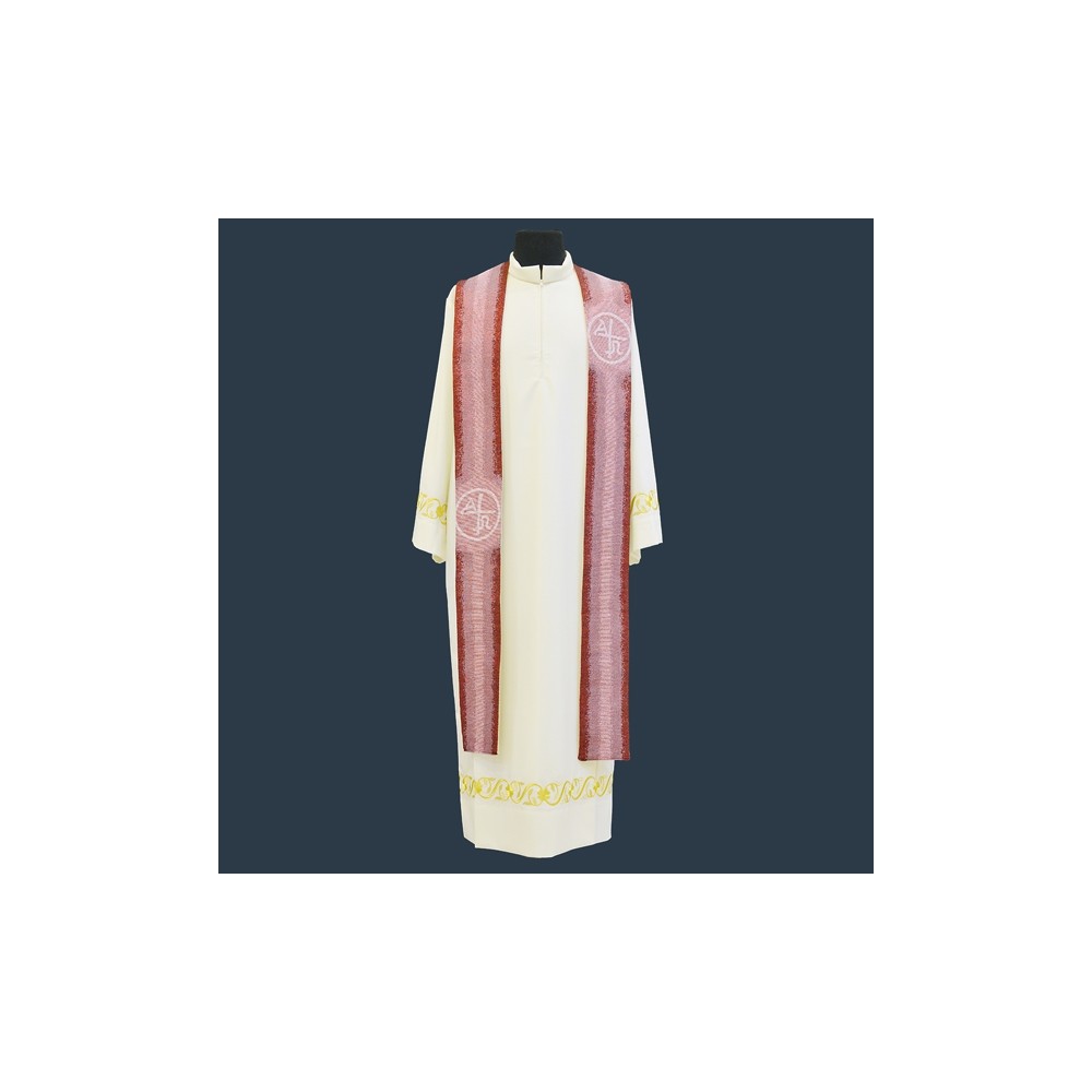 Stola bicolore per sacerdote in misto cotone/lurex, con ricami che rappresentano i simboli Δ e Ω. Il tessuto è elegante e resistente. Disponibile nei vari colori liturgici. Può essere usata sia dal lato avorio che dal lato rosso, a seconda dell'occasione. Made in Italy.