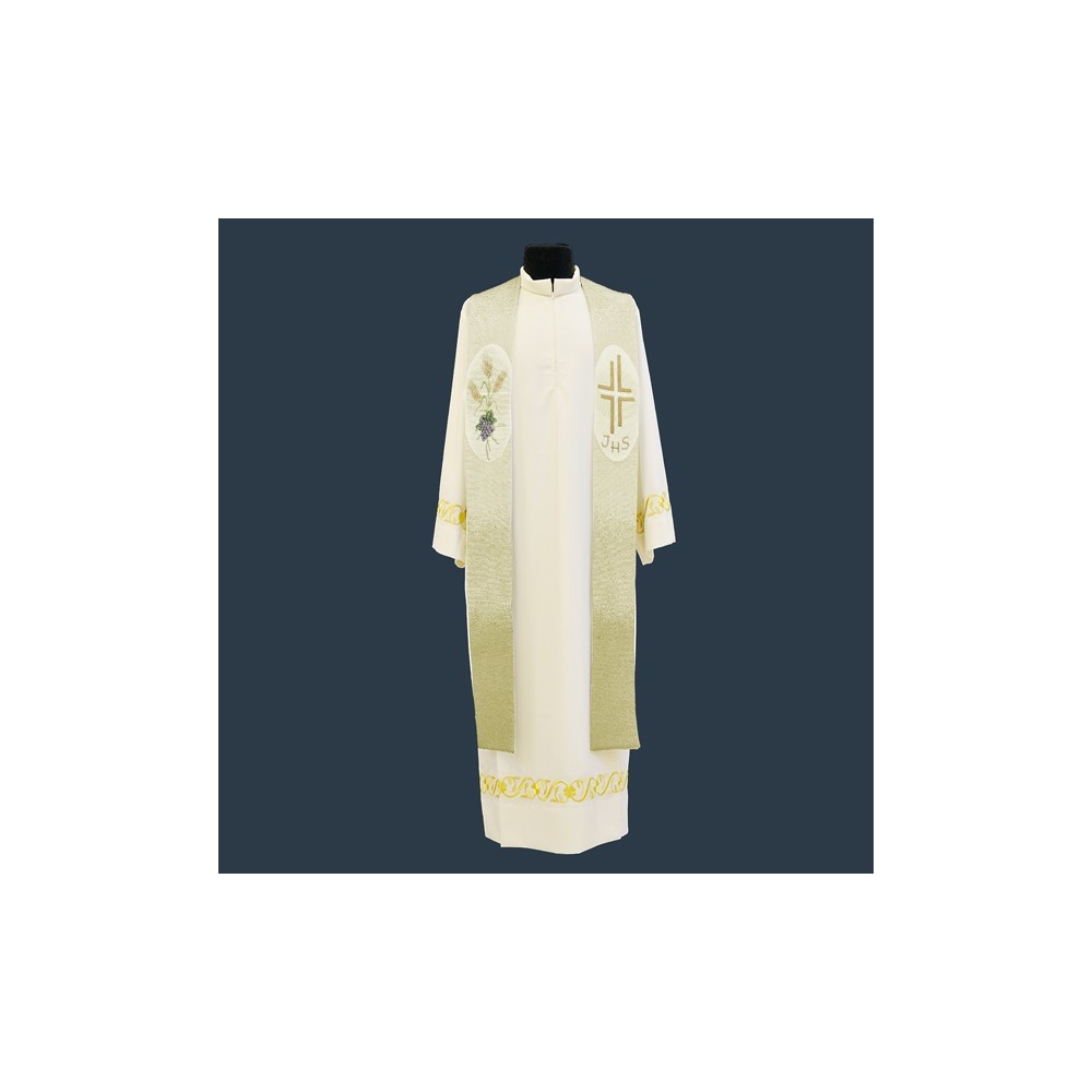 Stola bicolore per sacerdote in misto cotone/lurex, con ricami che rappresentano i simboli eucaristici. Il tessuto è elegante e resistente. Disponibile nei vari colori liturgici. Può essere usata sia dal lato avorio che dal lato rosso, a seconda dell'occasione. Made in Italy.