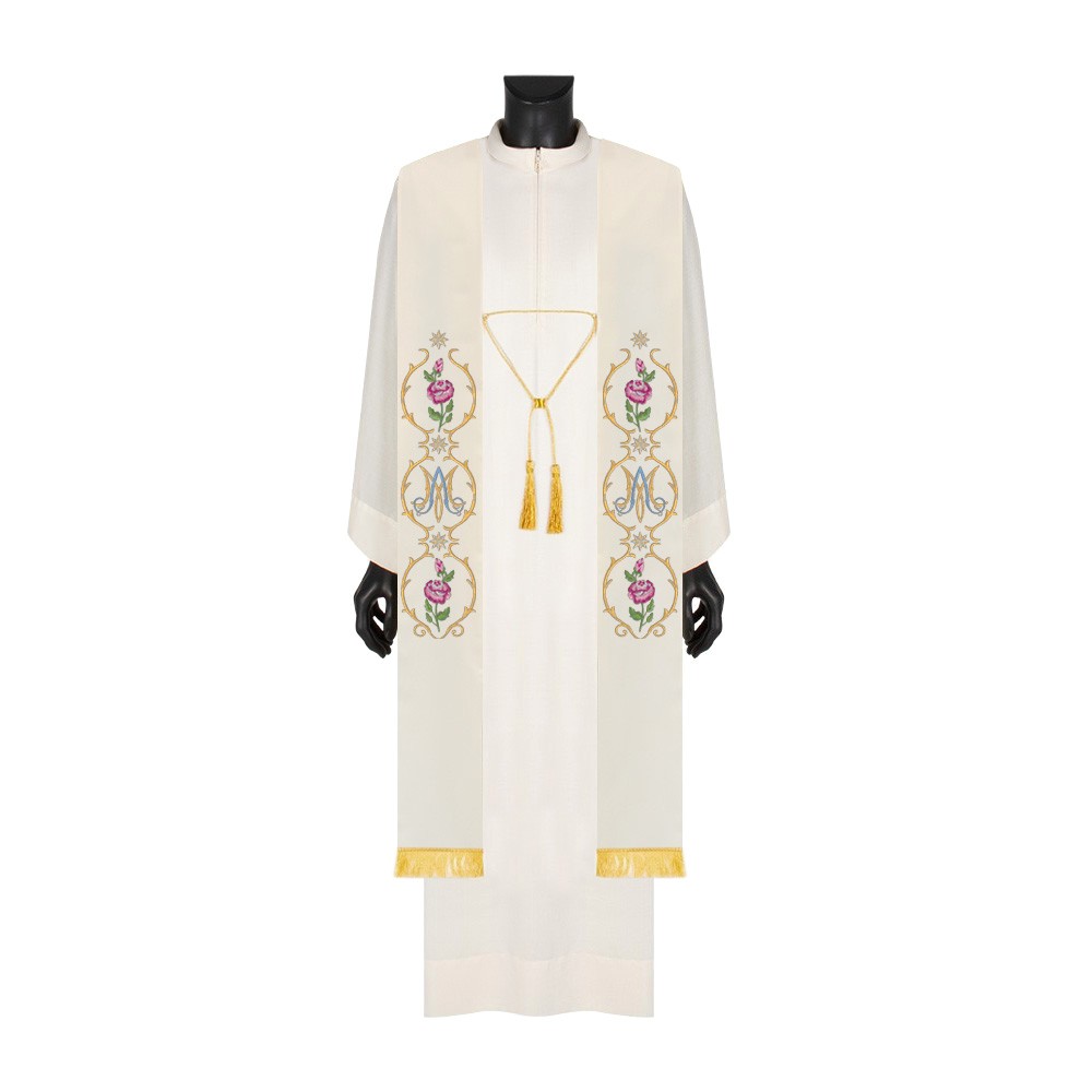 Elegante stola sacerdotale con ricamo Mariano in tessuto poliestere.
