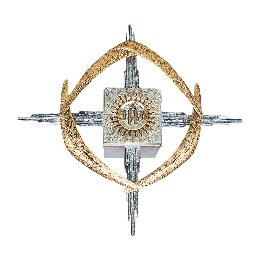 Questo pregiato arredo sacro è in ottone fuso bicolore oro e argento, realizzato in Italia da esperti artigiani, garantendo lavorazione e materiali di qualità.