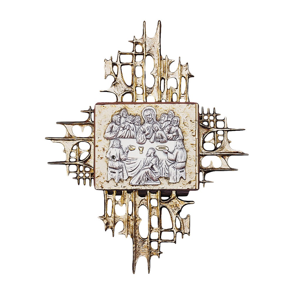 Tabernacolo da parete in legno e ottone bicolore, con rappresentazione dell'Ultima Cena.
