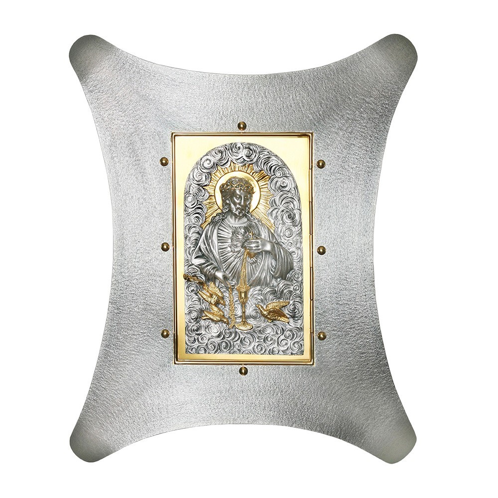 Tabernacolo a muro in ottone bicolore. Su questo tabernacolo è raffigurato Gesù coronato di spine e Sacro Cuore.