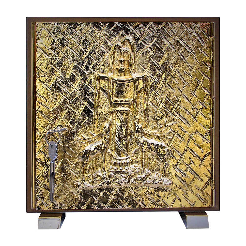 Tabernacolo in ottone dorato, con decoro Cervi alla Fonte.