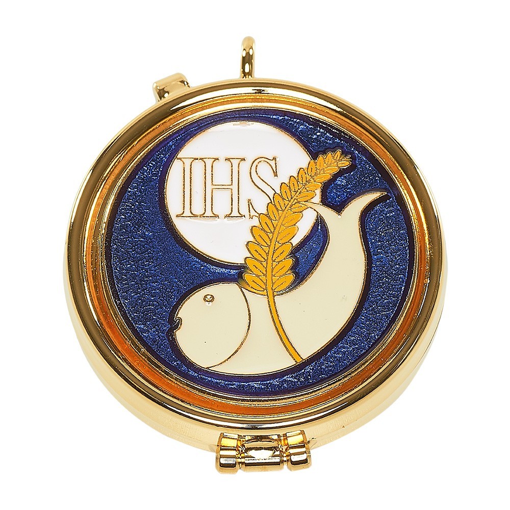 Consegna in 2 settimaneTeca porta ostie con placca smaltata "Agnello della pace".