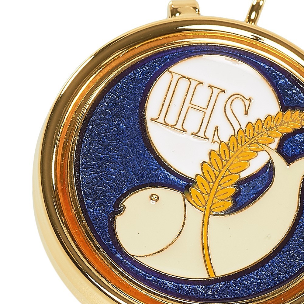 Teca porta ostie con placca smaltata "Agnello della pace".