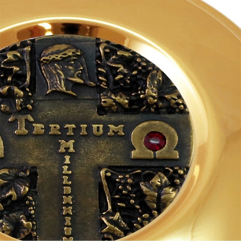 Custodia per ostie in ottone con placca in rilievo Tertium Millenium.