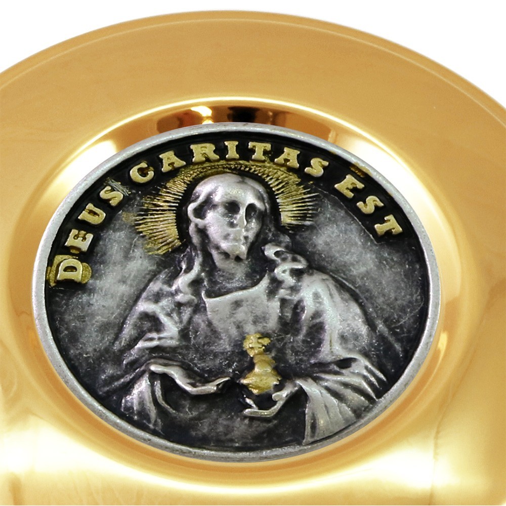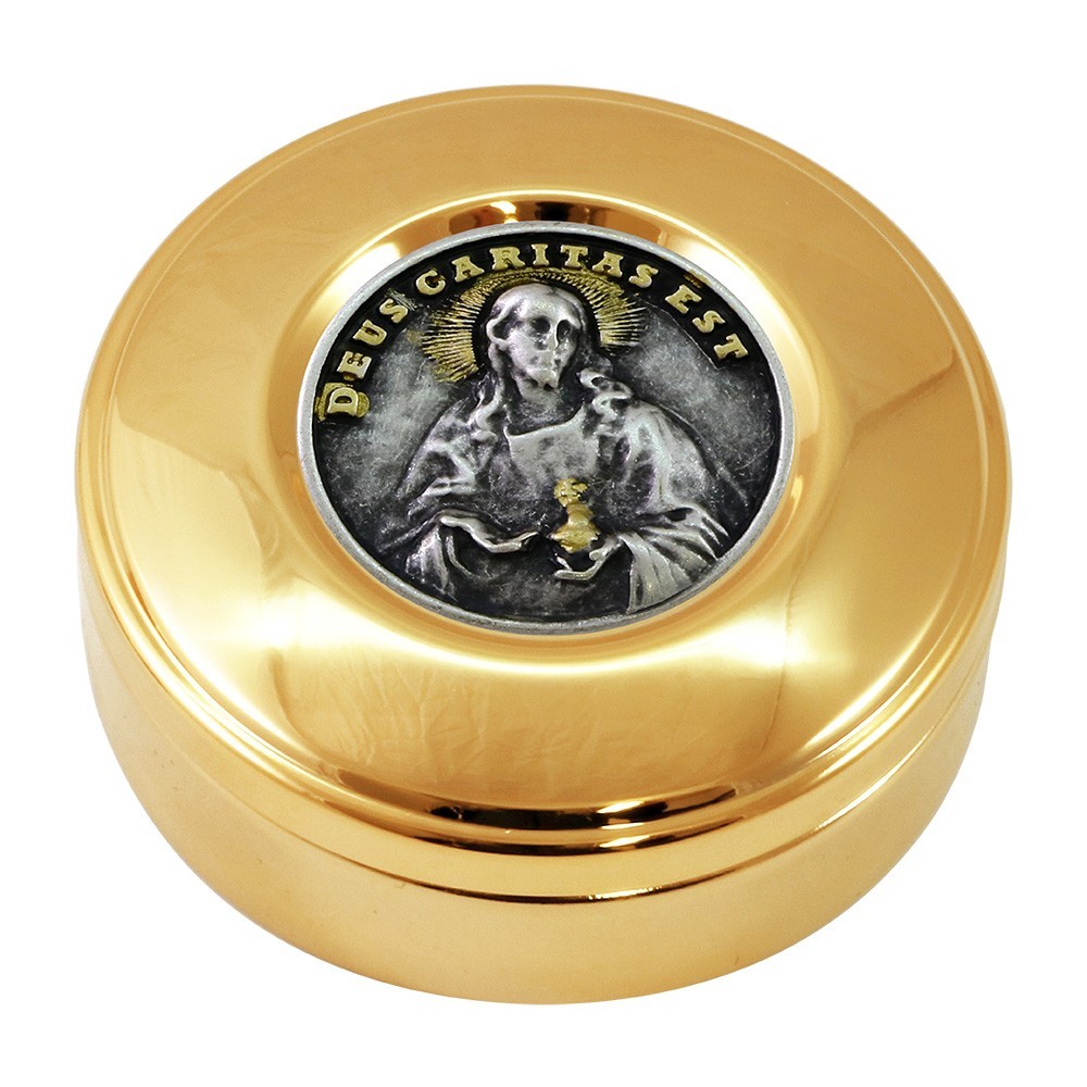 Scatola porta ostie con placca in rilievo "Deus Caritas Est".