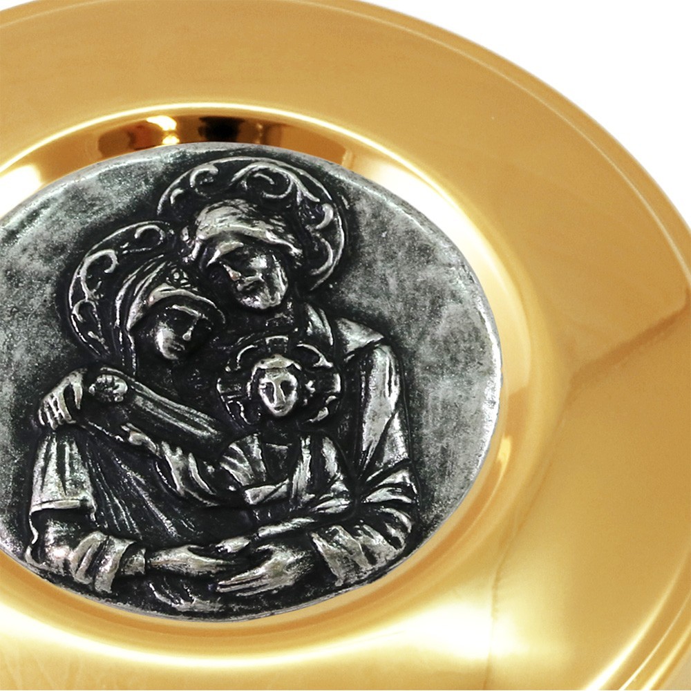 Teca per ostie con placca con finitura bicolore oro e argento.