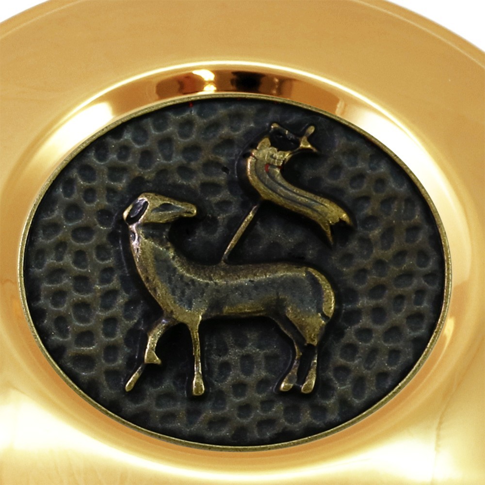 Teca per ostie con placca con finitura bicolore oro e argento.