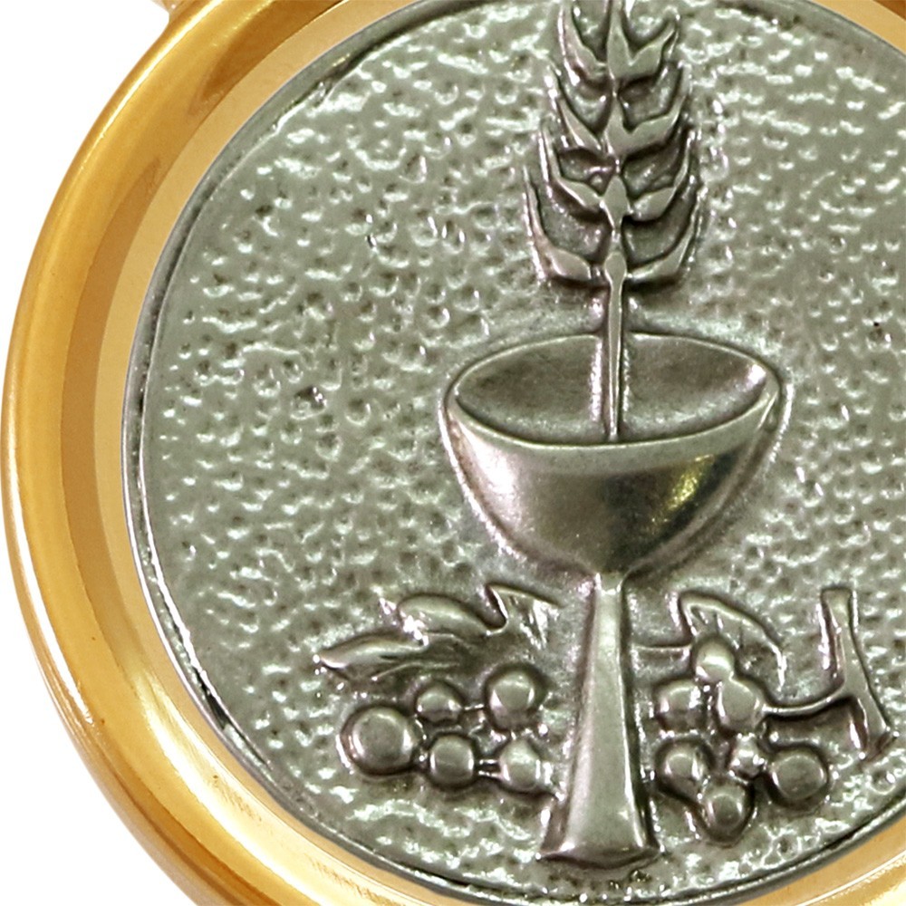 Teca eucaristica Ø 4 cm in ottone con placchetta smaltata Comunione.