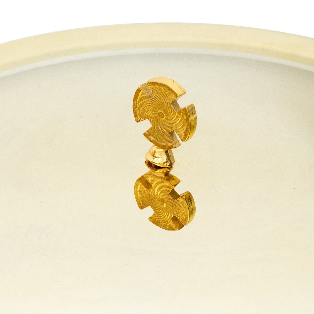 Realizzata in ottone con finitura bicolore oro e argento.
