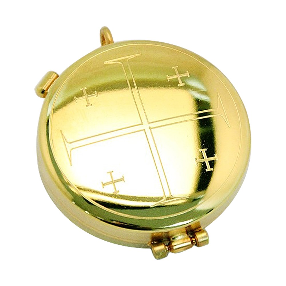 Teca portaostie dorata con Croce di Gerusalemme. Made in Italy. Contiene circa 12 particole.