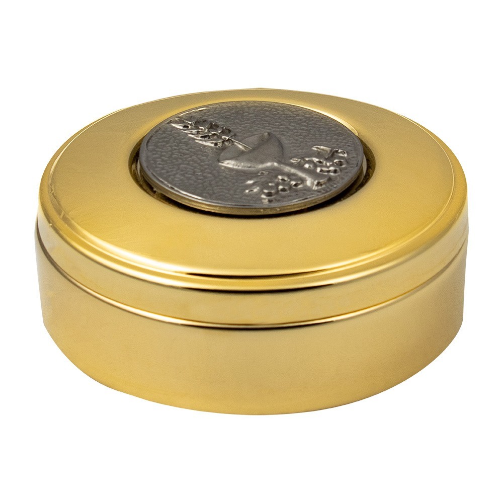 Teca per ostie in ottone con placca in rilievo "Calice".