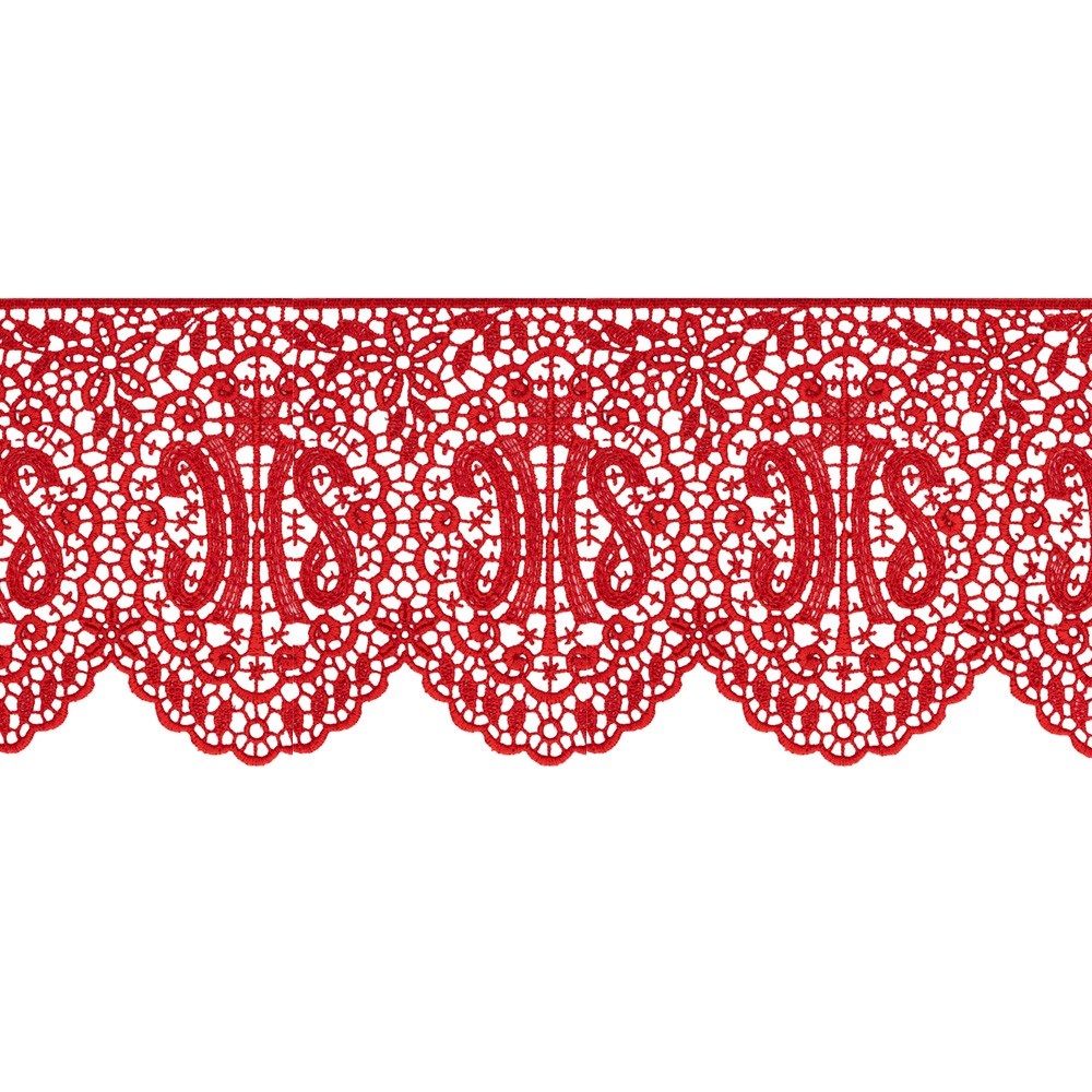 Bordo balza liturgica per tovaglie d'altare con ricamo JHS, in misto viscosa e poliestere.