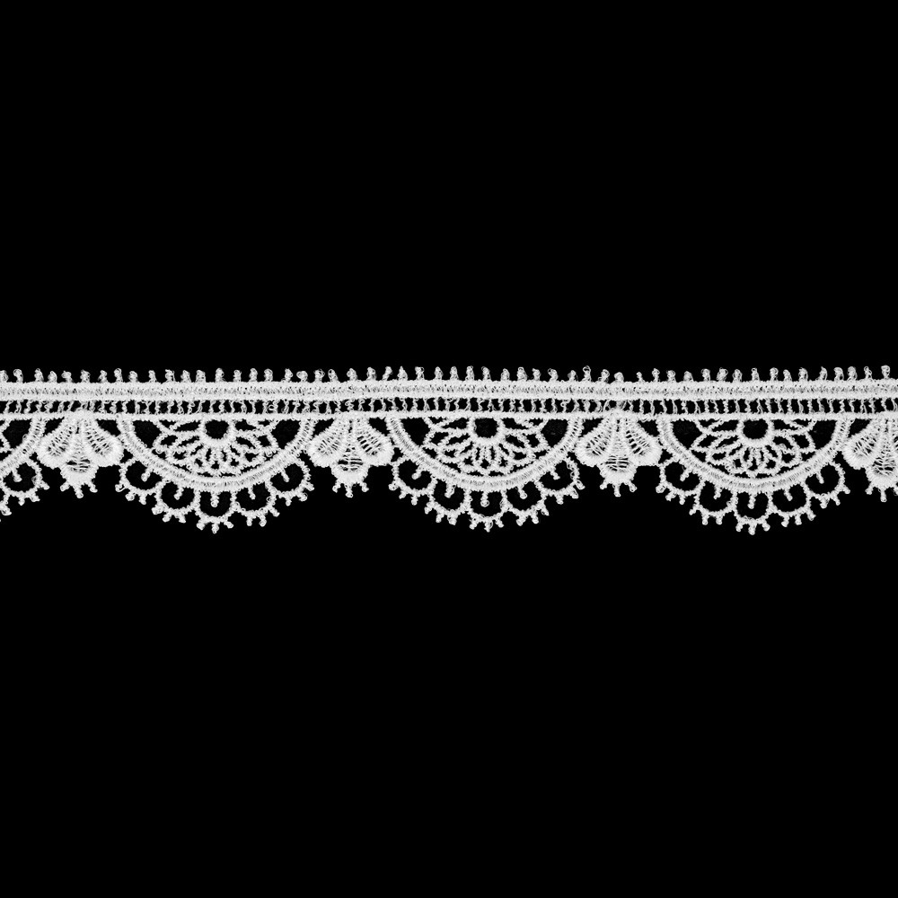 Lavorazione pizzo macramè su tessuto misto viscosa e poliestere.