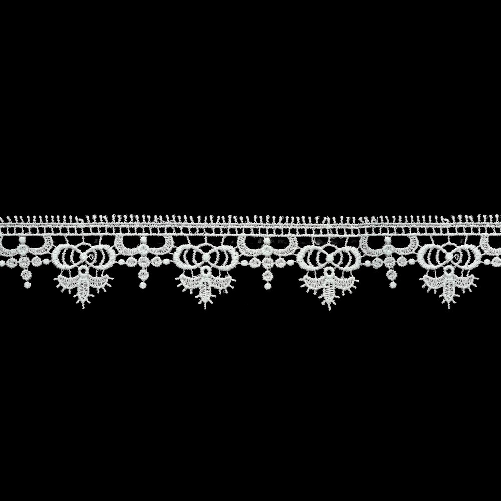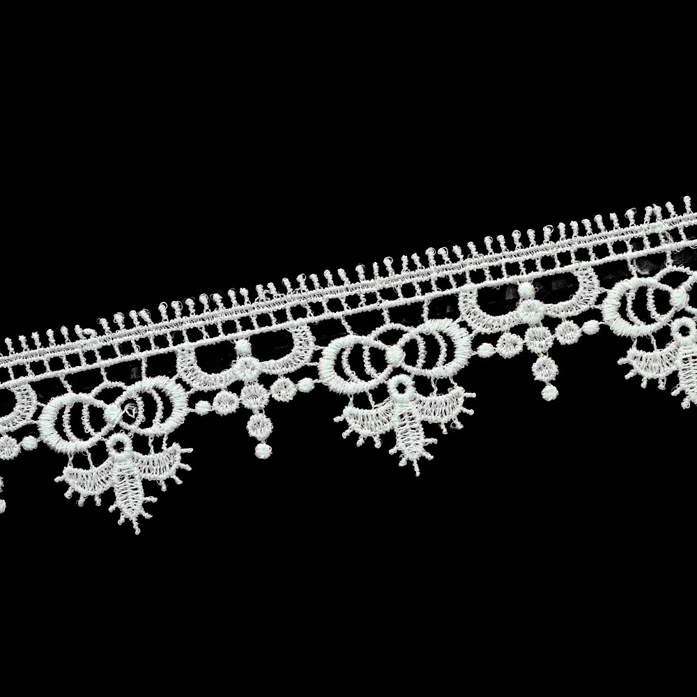Bordura in pizzo macramè bianco per servizi d'altare e tovaglie d'altare, ricamo corona con smerlo in tessuto misto viscosa.