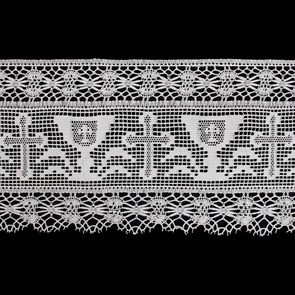 Meravigliosa balza liturgica (alta 22 cm circa) per tovaglia da altare in pizzo macramè tombolo.