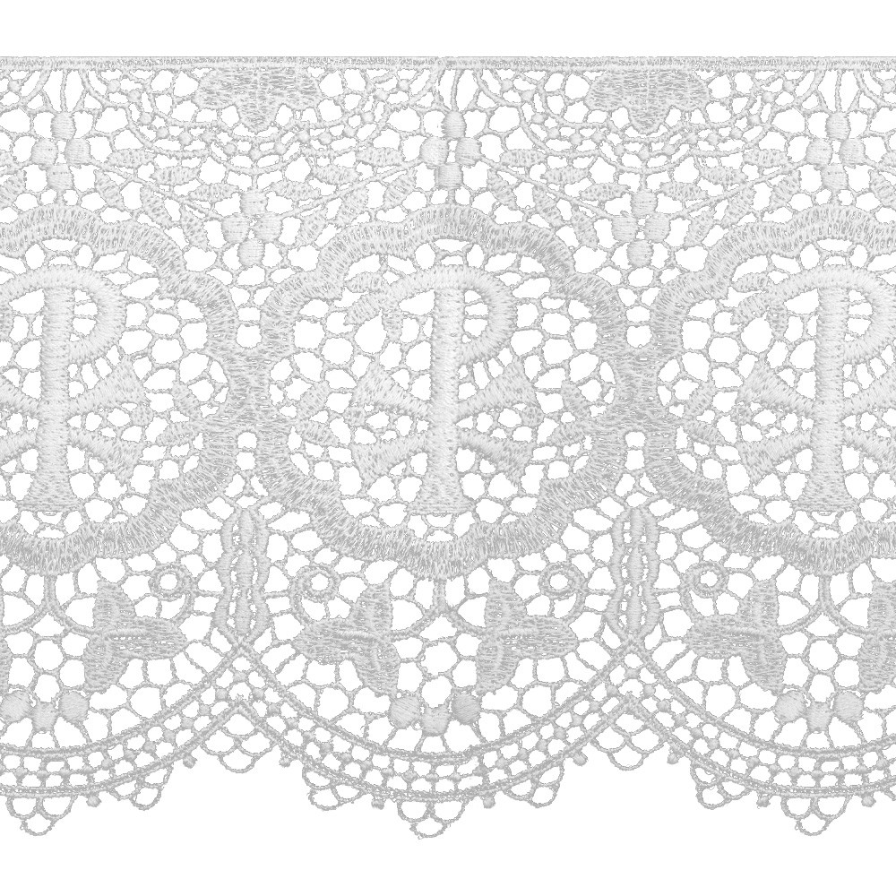 Bordo liturgico da altare color avorio realizzata su tessuto in macramè con ricamo PX.