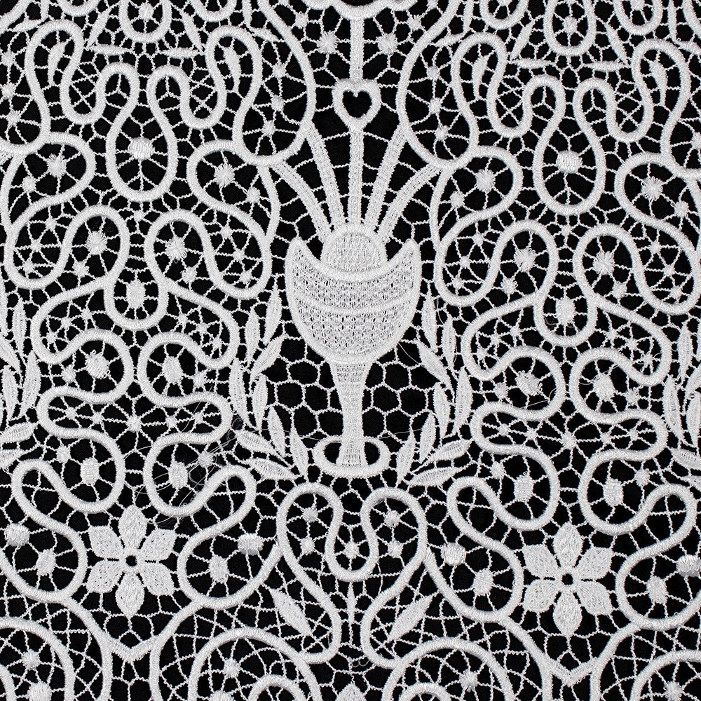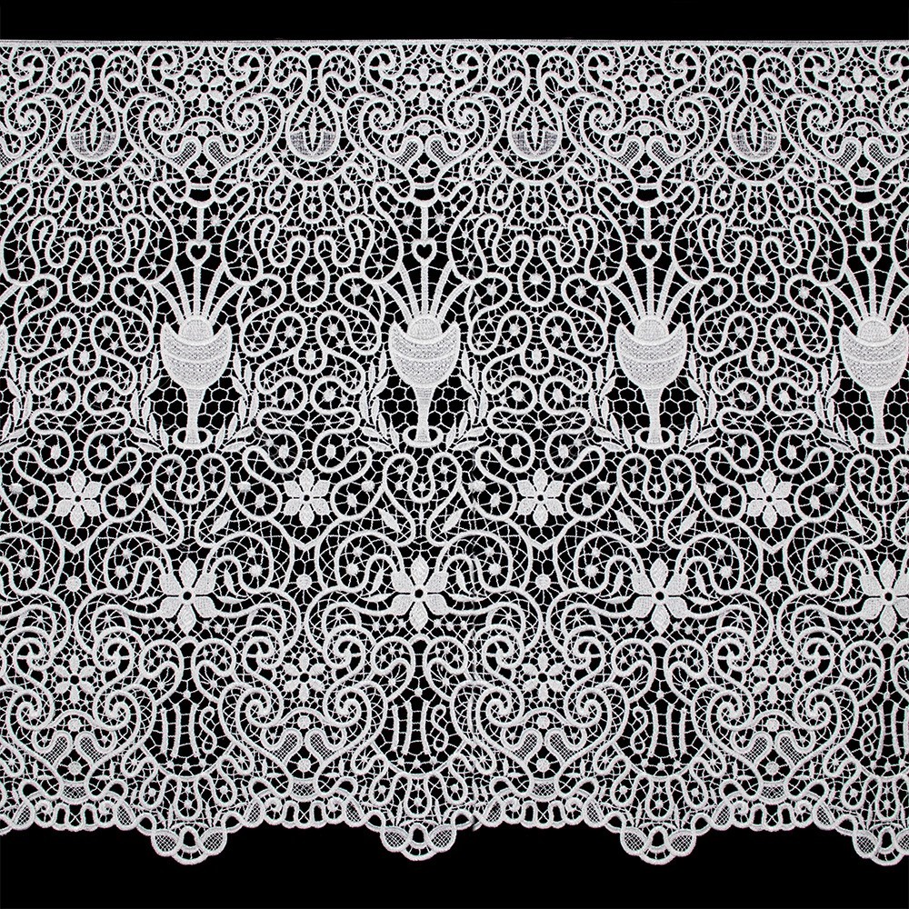 Bordo per tovaglia da altare in tessuto macramè di colore bianco. Ideale per servizi da altare e tovaglie da altare. Questa balza è disponibile nelle seguenti misure: H 16 cm, 23 cm e 60 cm.