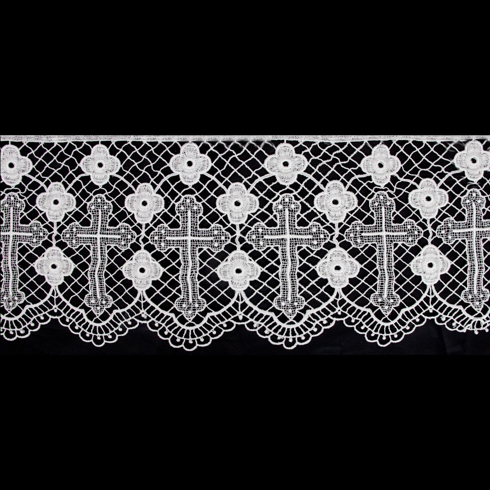 Bordo merletto in cotone bianco per tovaglia da altare.