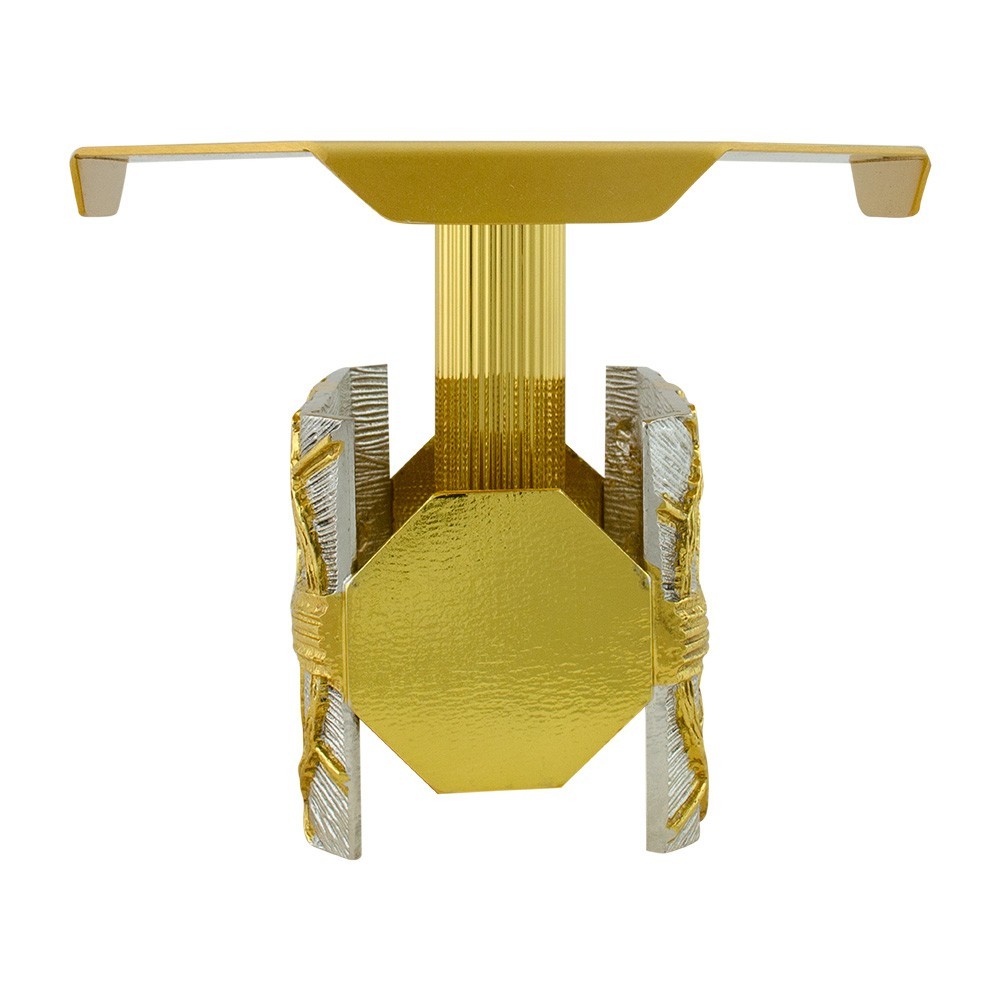 Tronetto per ostensorio in ottone bicolore, h 13 cm.