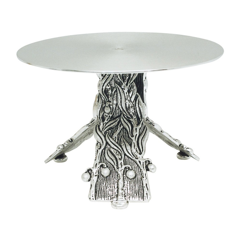Questa base per ostensorio è prodotta interamente in ottone argentato, con decori in rilievo di tralci di ulivo.