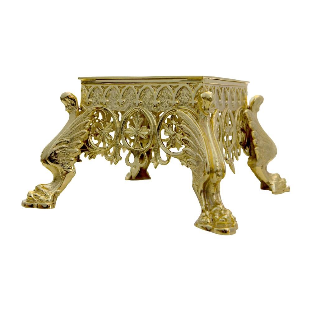 Tronetto base per ostensorio in ottone antico, h 16,5 cm.