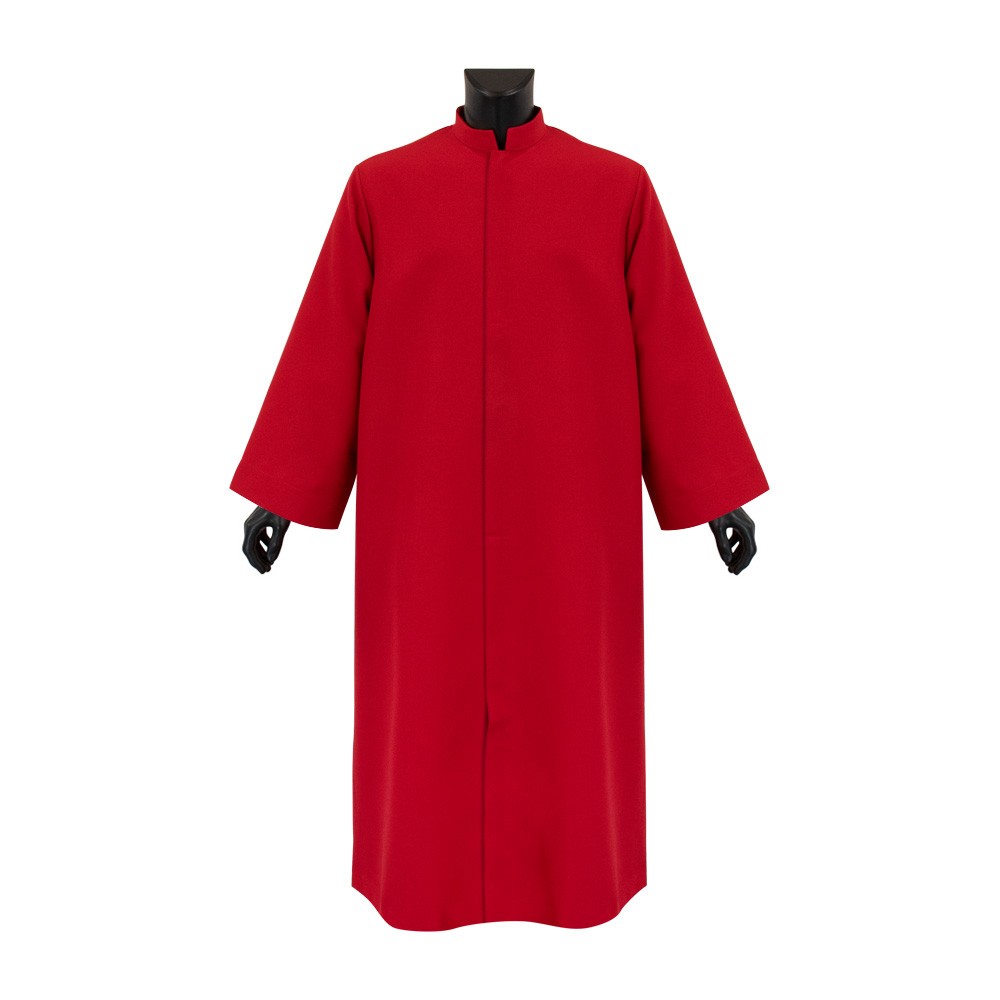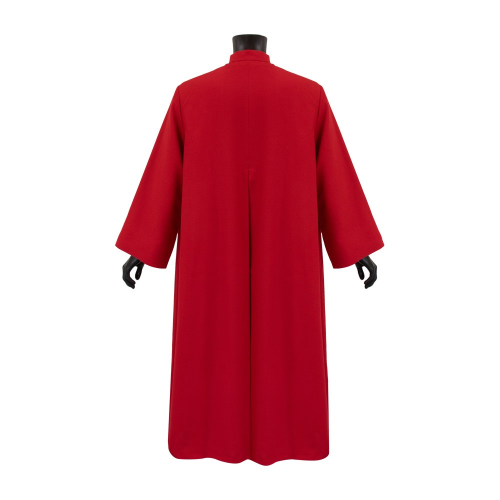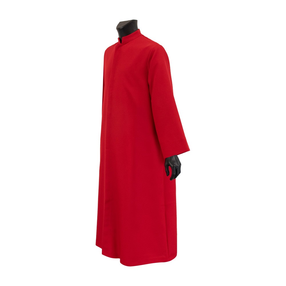 Questa talarina rossa per ministranti e chierichetti è una lunga tunica liturgica con ampie maniche e colletto rialzato irrigidito, progettata per garantire comfort e raffinatezza durante le celebrazioni.