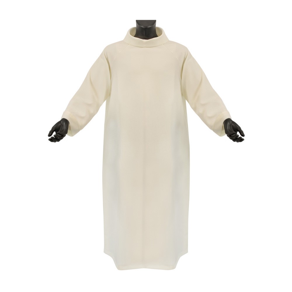 Questa tunica per ministranti di colore avorio è perfetta per le celebrazioni liturgiche. Si presenta svasata con collo ad anello, ampie maniche e senza zip, garantendo un'ottima vestibilità.