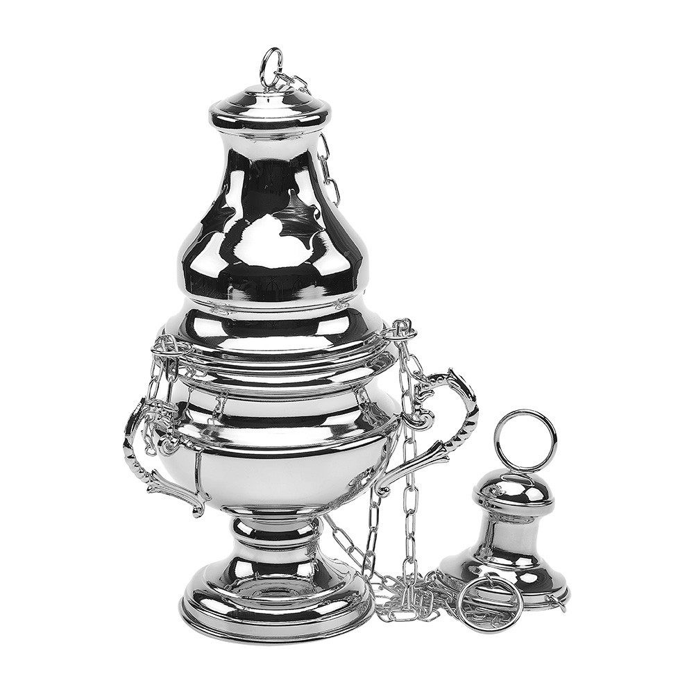 Turibolo classico (h 27 cm) realizzato interamente in ottone nichelato. Completo di catene e di fornello estraibile e lavabile.