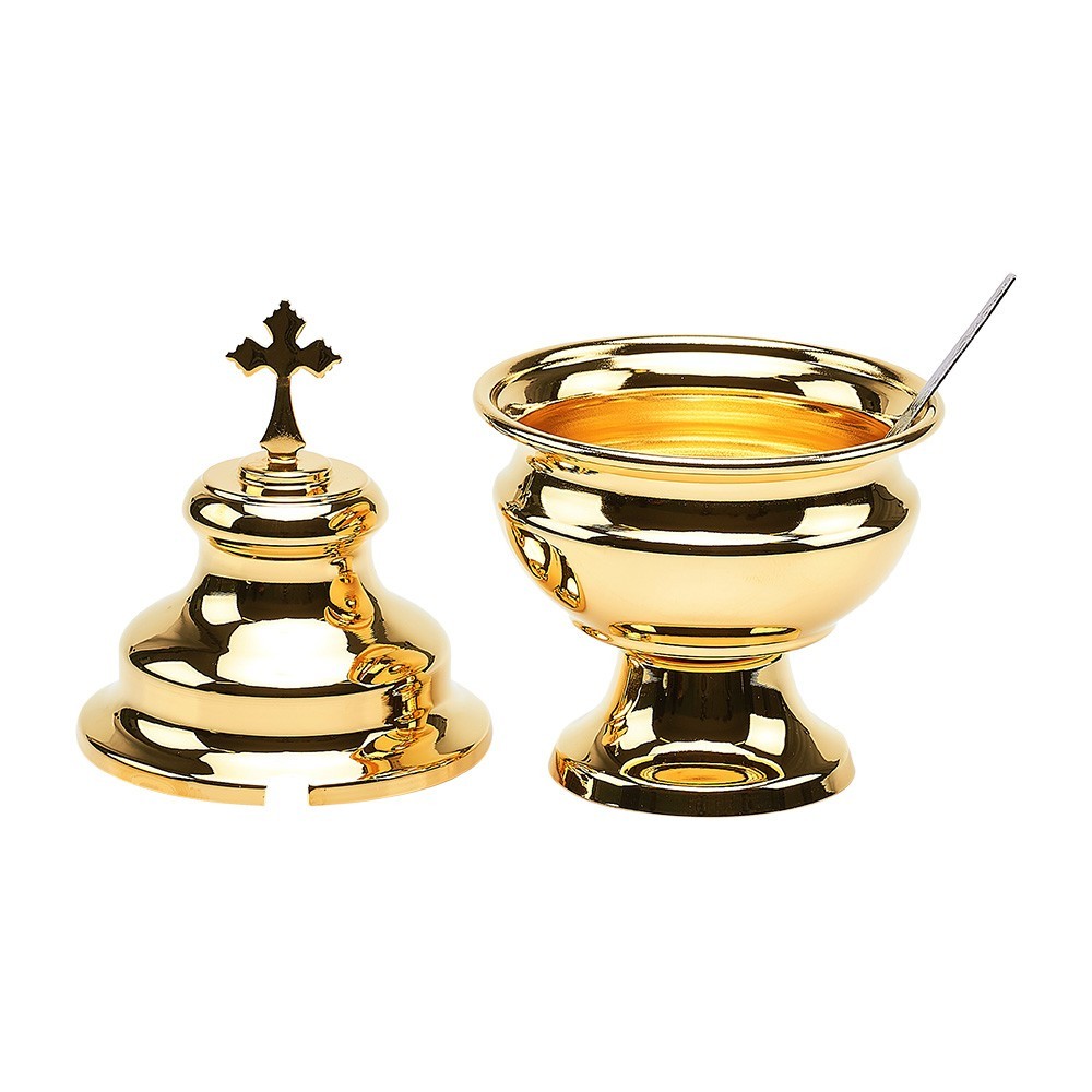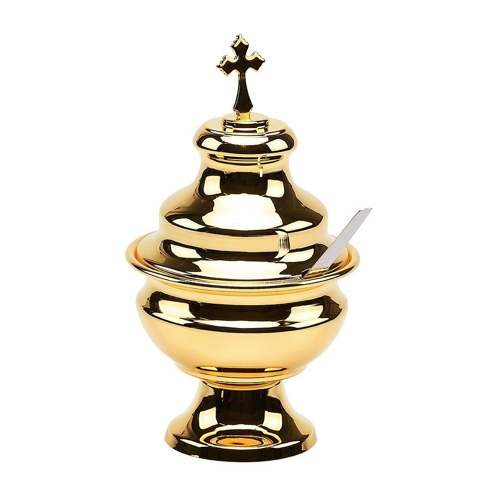 Turibolo con navetta e cucchiaino interamente in ottone bicolore.