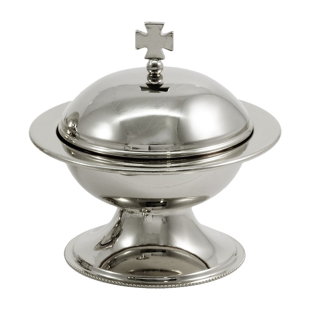 Navicella portaincenso per turibolo in ottone con finitura argento. Made in Italy.