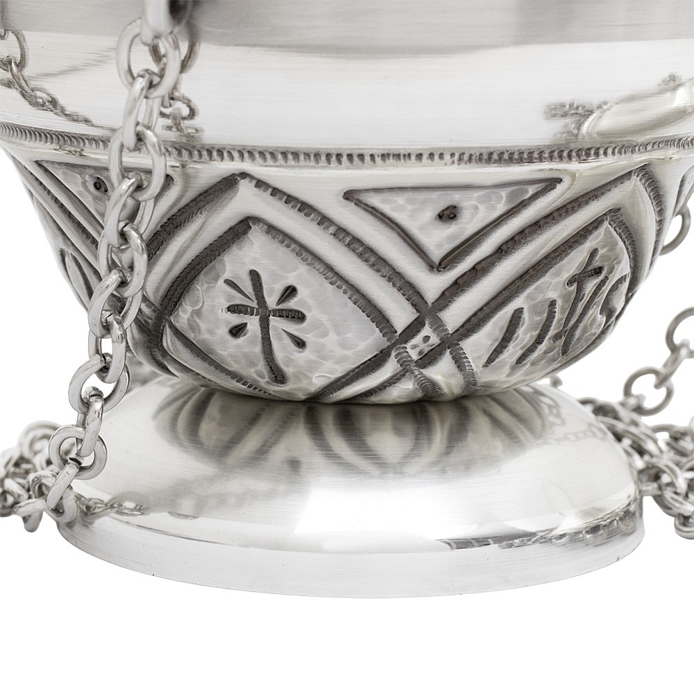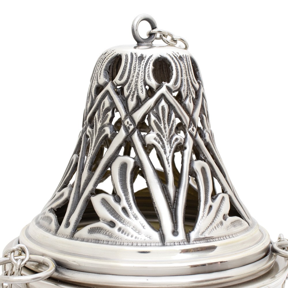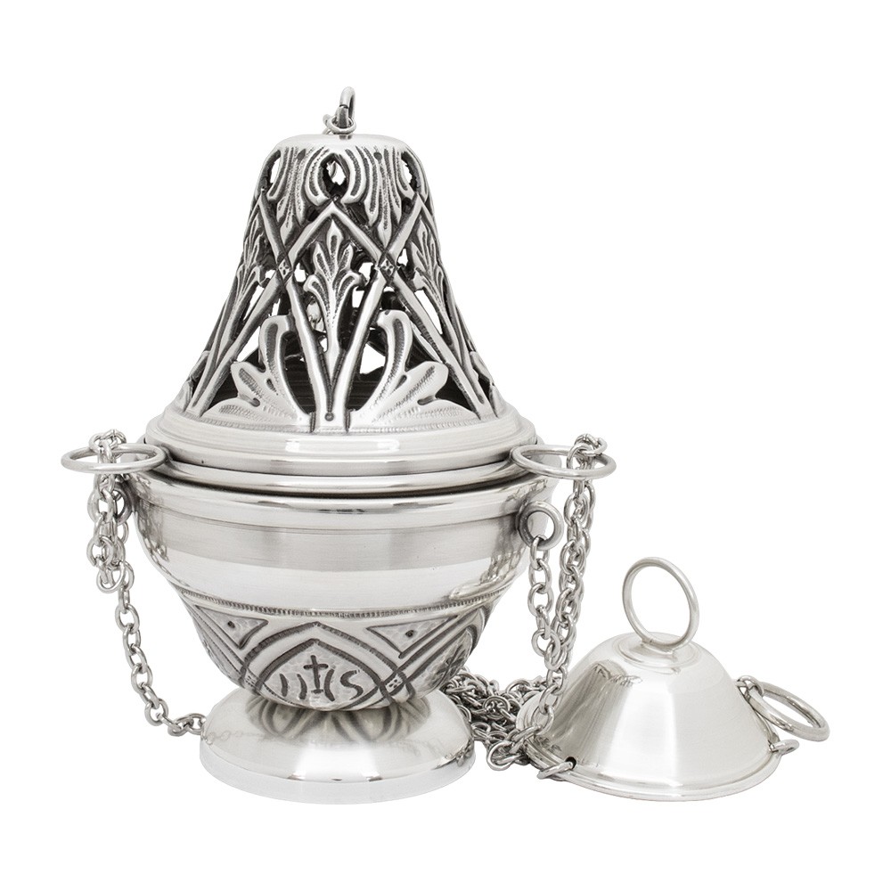 Questo pregiato set liturgico si compone da un turibolo (con cestello estraibile) e una navetta realizzati interamente in Italia da esperti maestri cesellatori.
